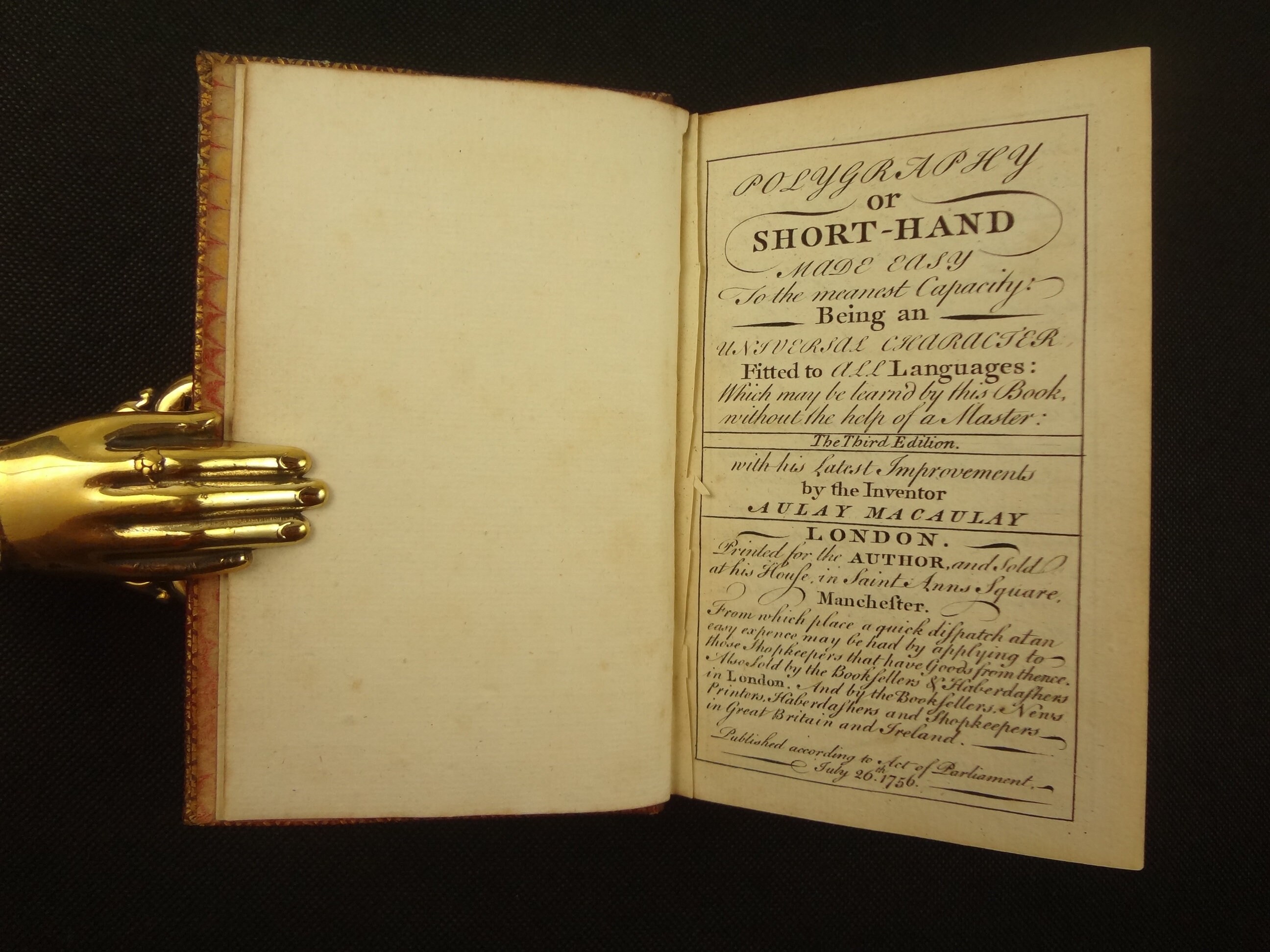 A beautiful 18th century English binding graces this 1756 edition of Macaulay's Polygraphy, or Short-Hand Made Easy...