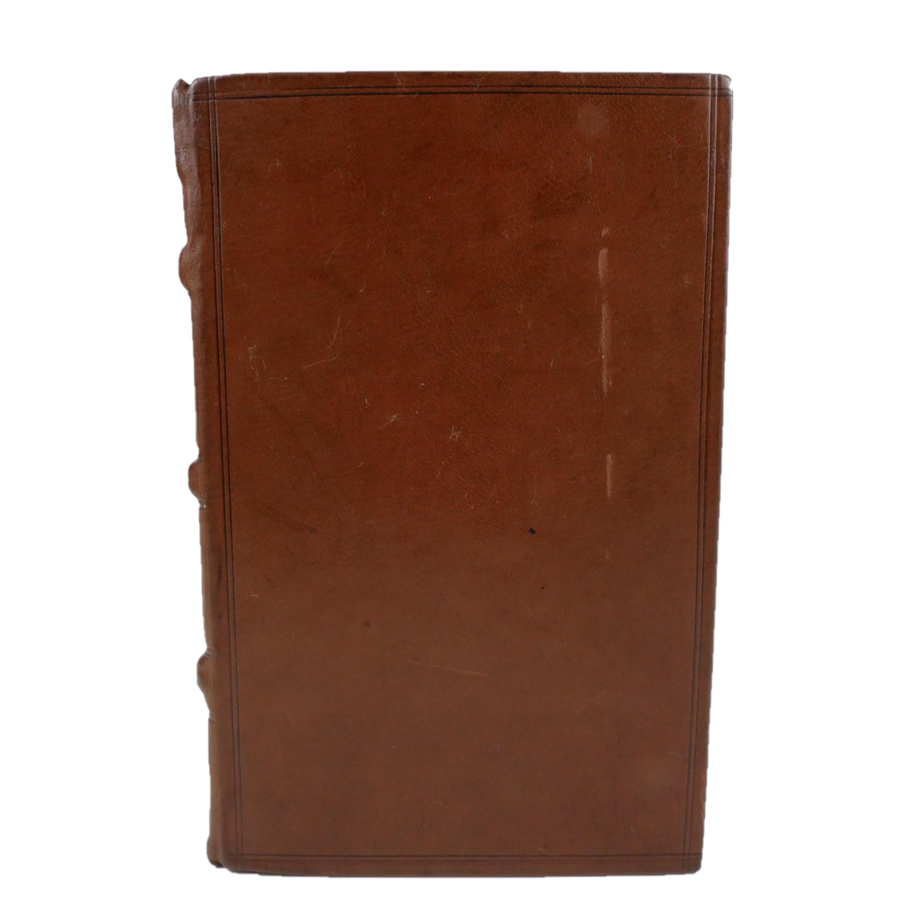 Measures approx. 17 x 11 x 4.5 cm. Calf binding; boards with outer blind double fillet. Spine with three raised bands, title in gilt in one compartment and year in gilt at base of spine. Gatherings of eight (octavo). 3 title pages, each work with separate collations.