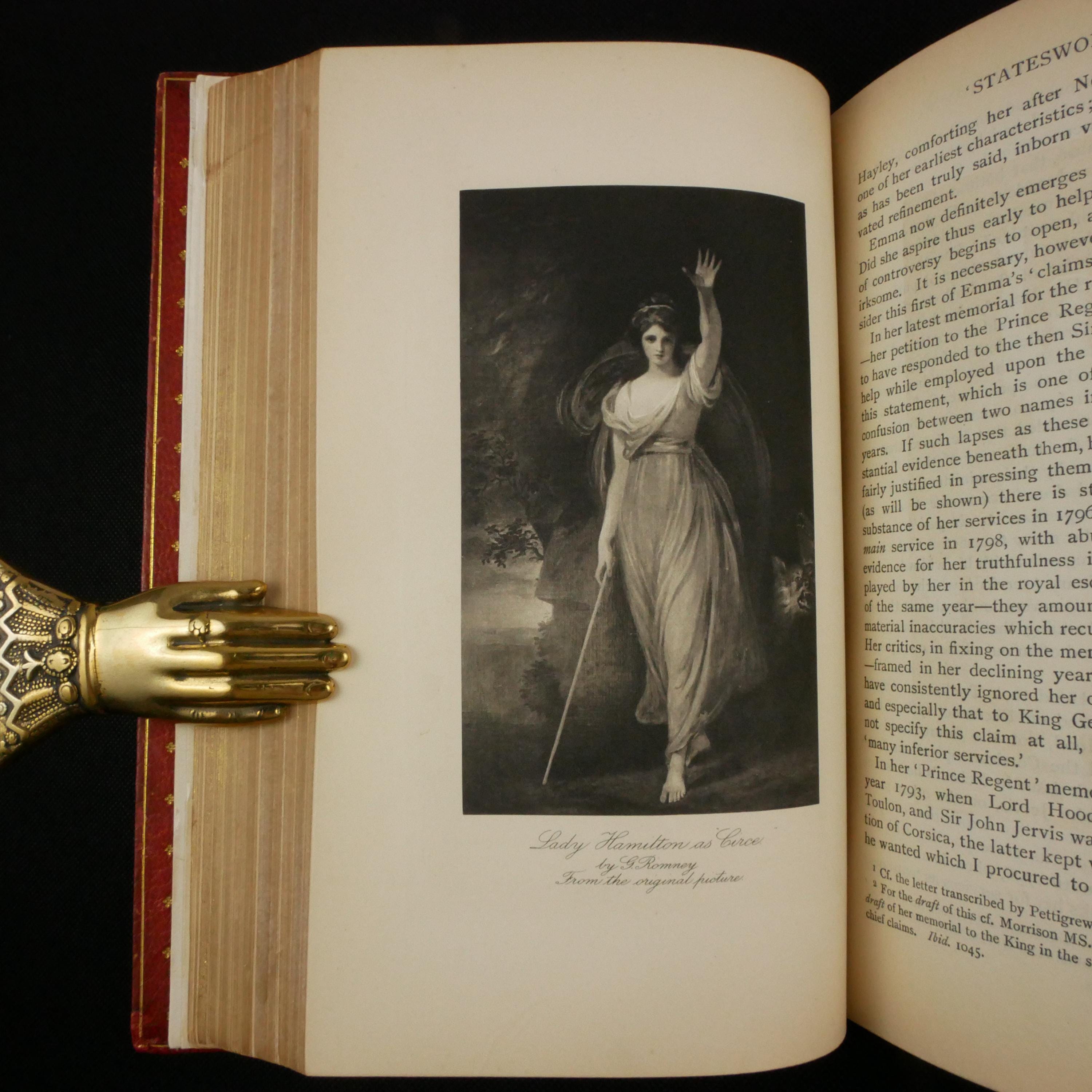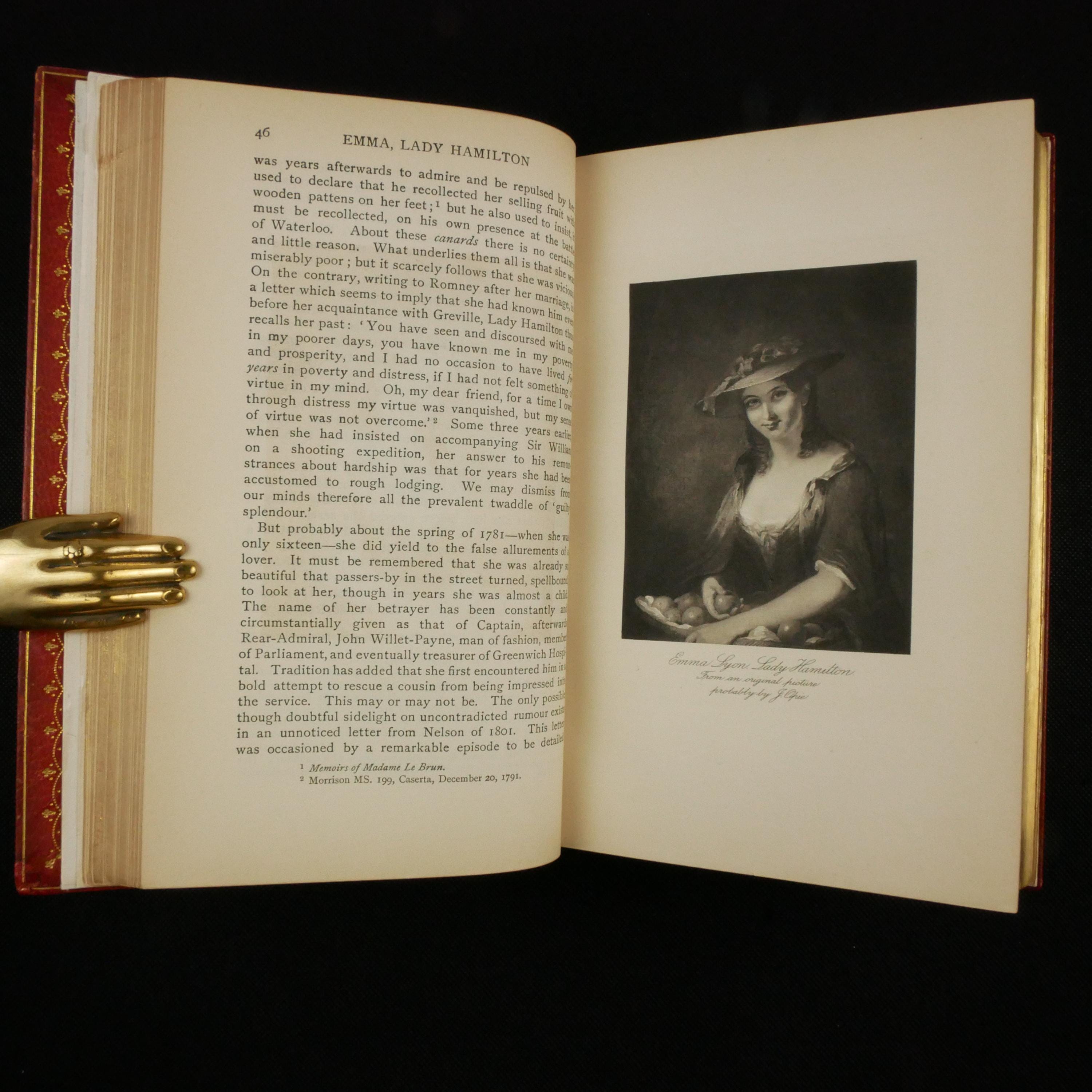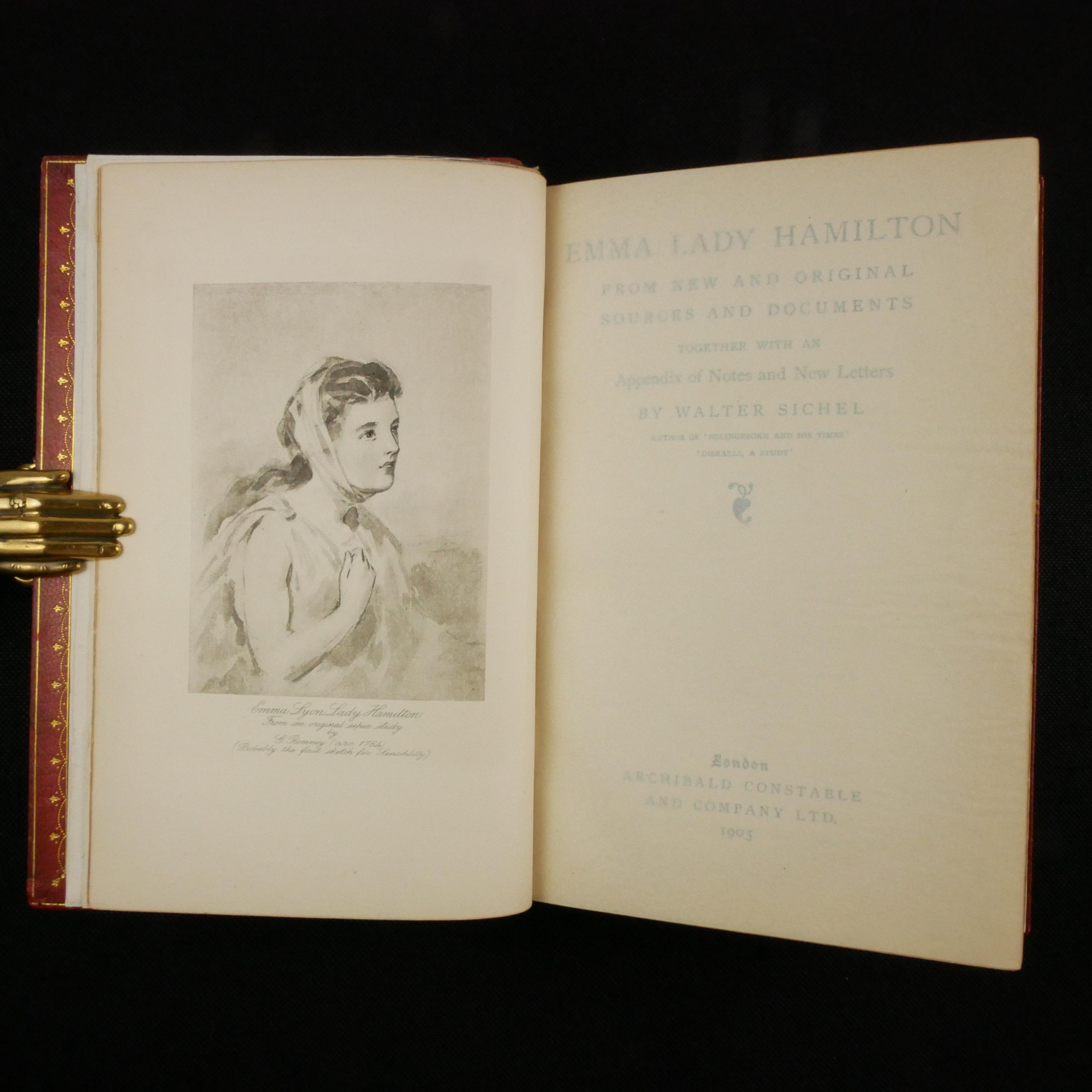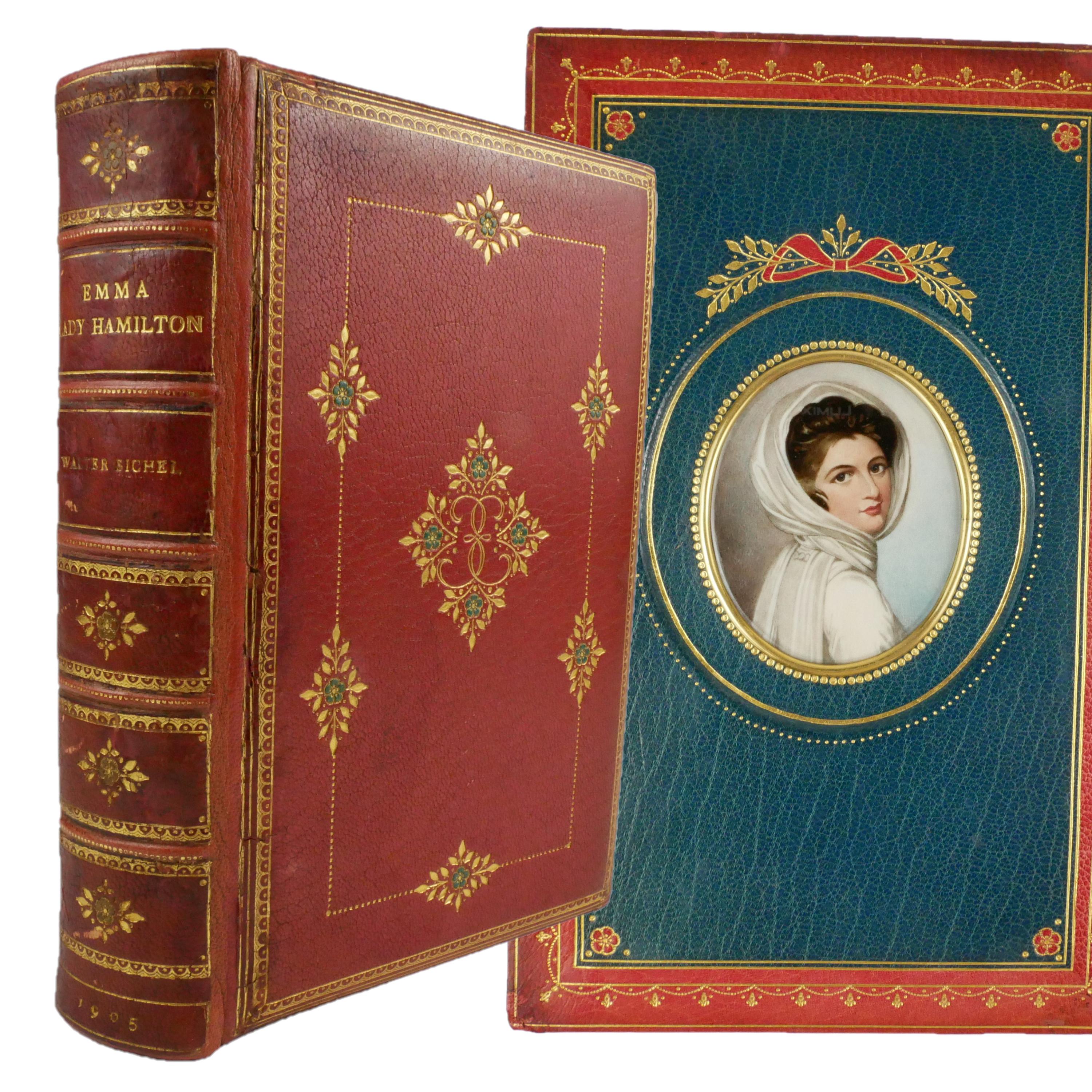 1. A Cosway-style binding, executed by Sangorski and Sutcliffe (with their stamp on the rear doublure), binding a 1905 biography of Emma Lady Hamilton.