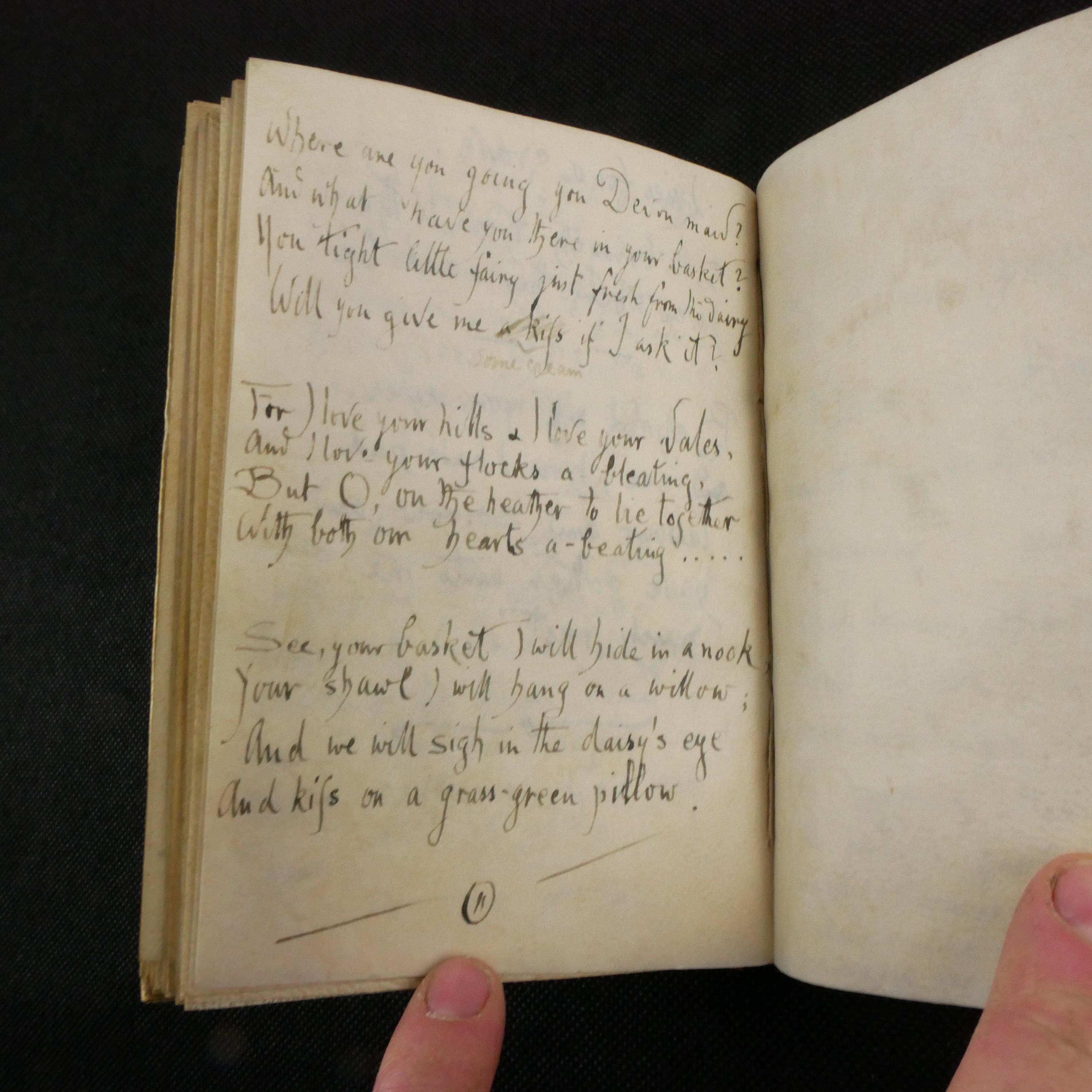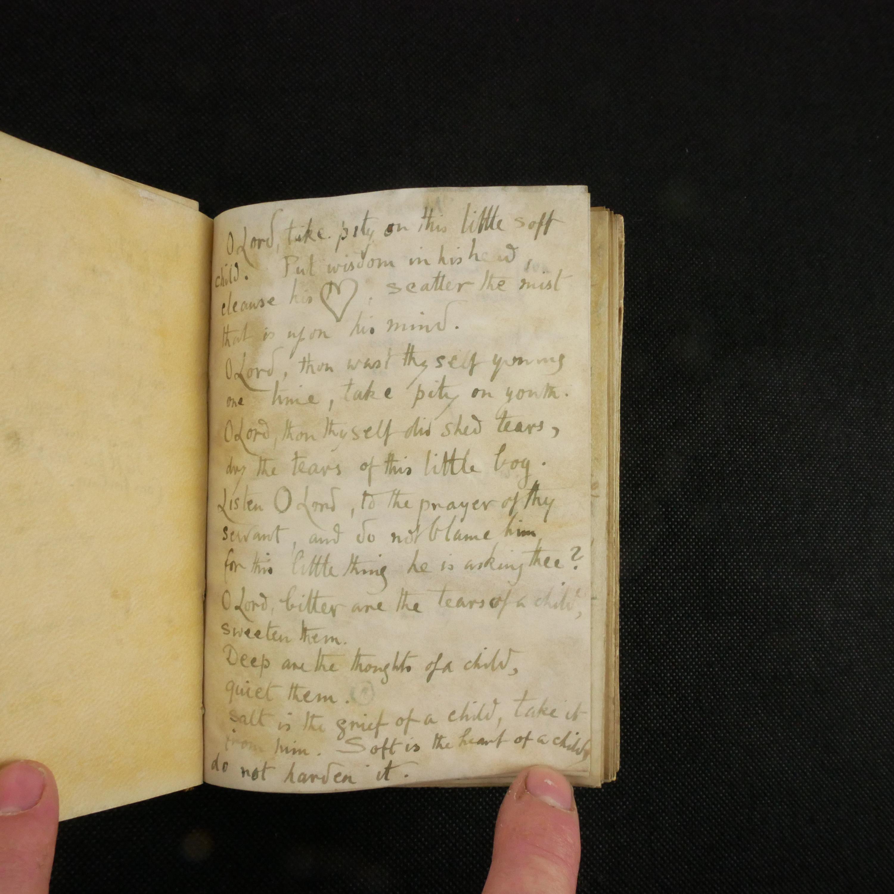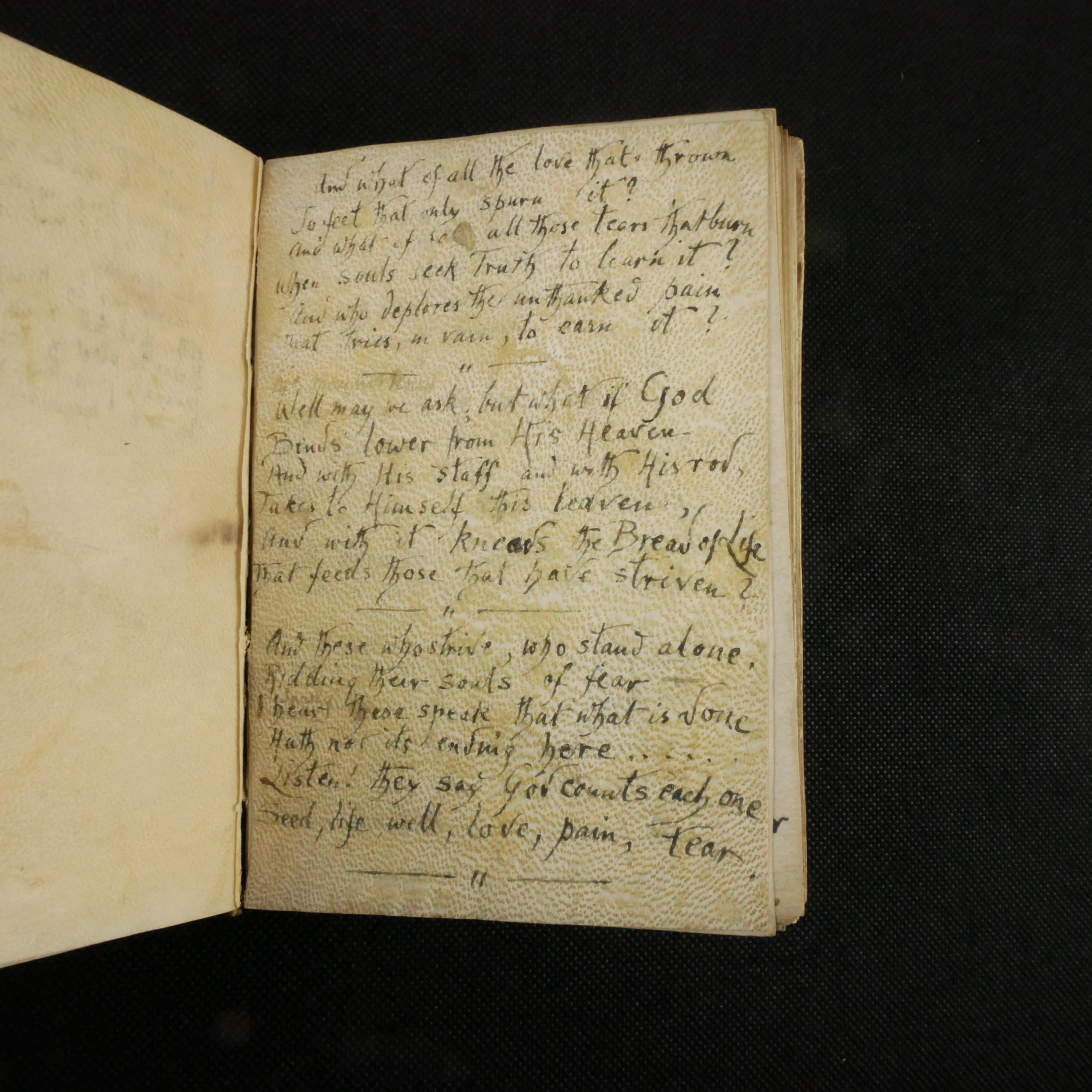 A wide swath of literary quotes reside within the book, as well as many (likely) original poetic works. Predominately, there is a theme of loss. This notebook may have been kept as a coping tool.