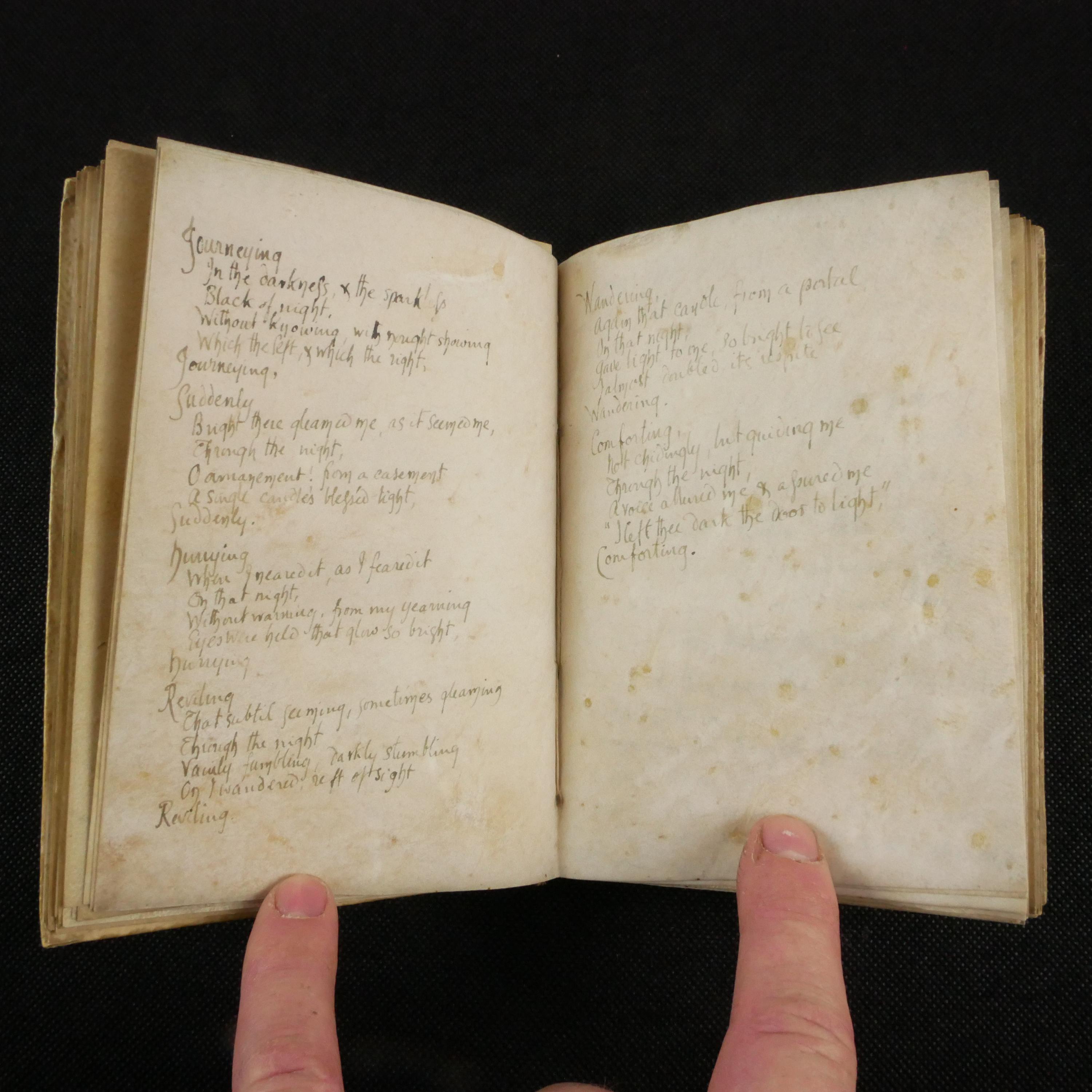 The vellum format - only a very rich person would have such a notebook and the crown on the front points to her social status. An all vellum notebook might have been produced by the Arts and Crafts movement, of which the Charteris family were patrons.
