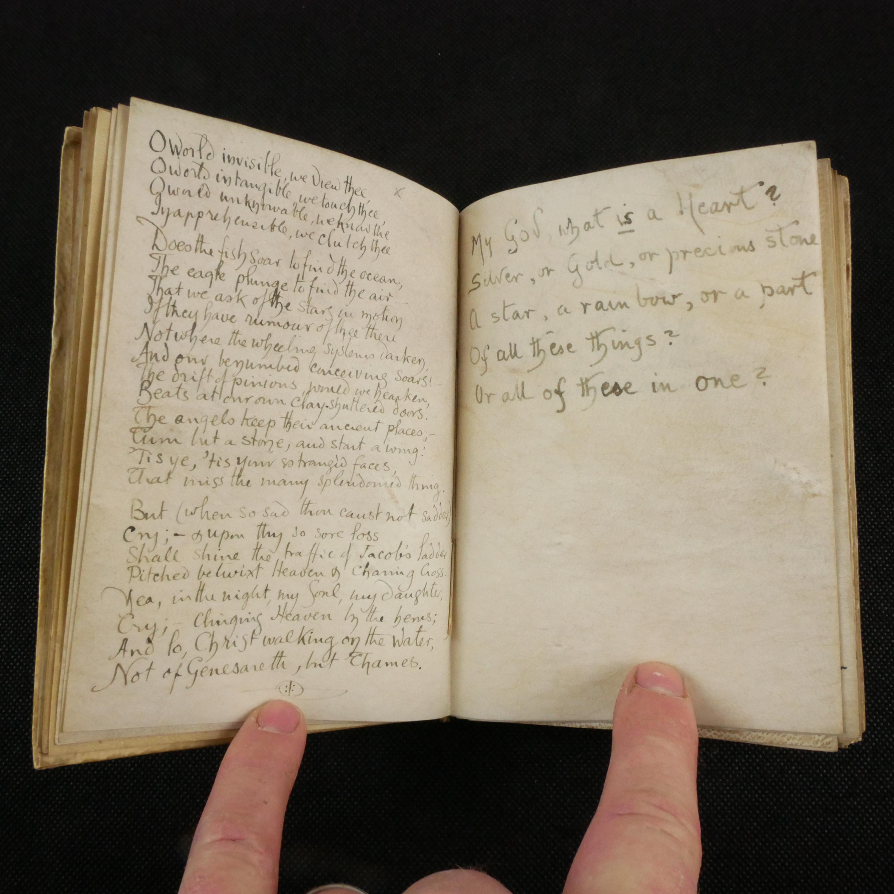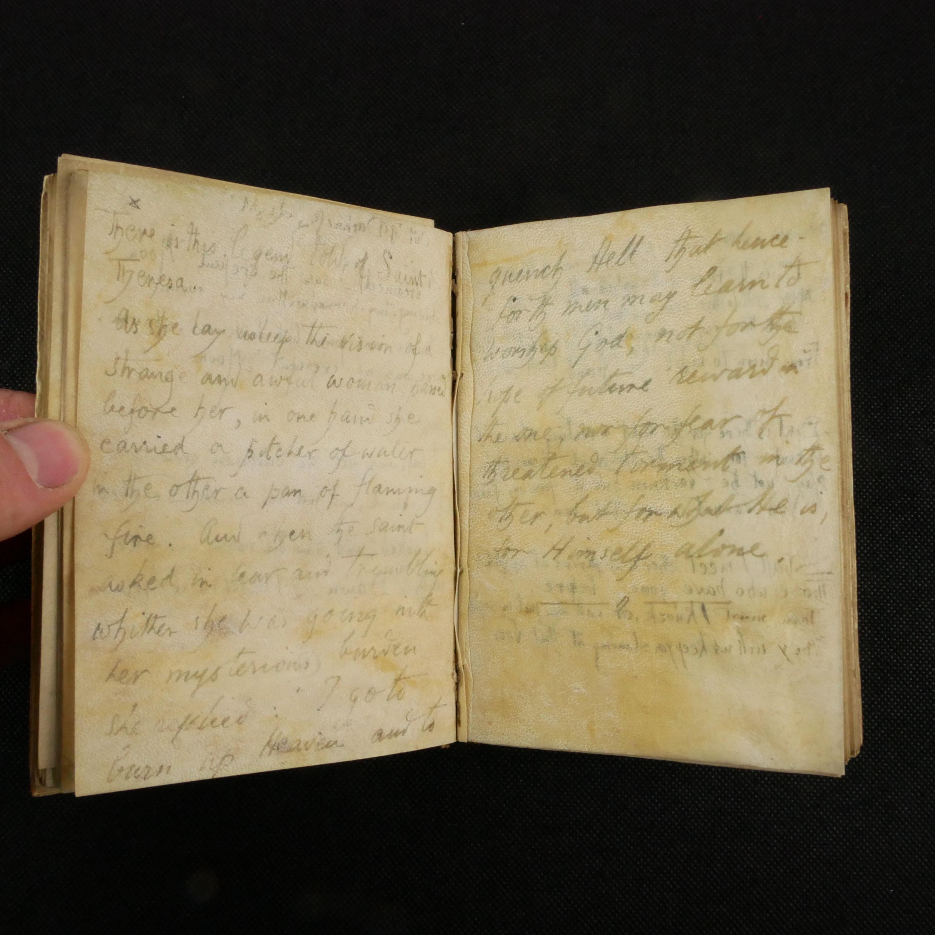 In terms of dating, The Francis Thompson poem quoted, The Kingdom of God, wasn't printed until 1908. That's not to say that the author of this book might have come across Thompson before that, but it gives some rough estimate of the time this manuscript was produced.