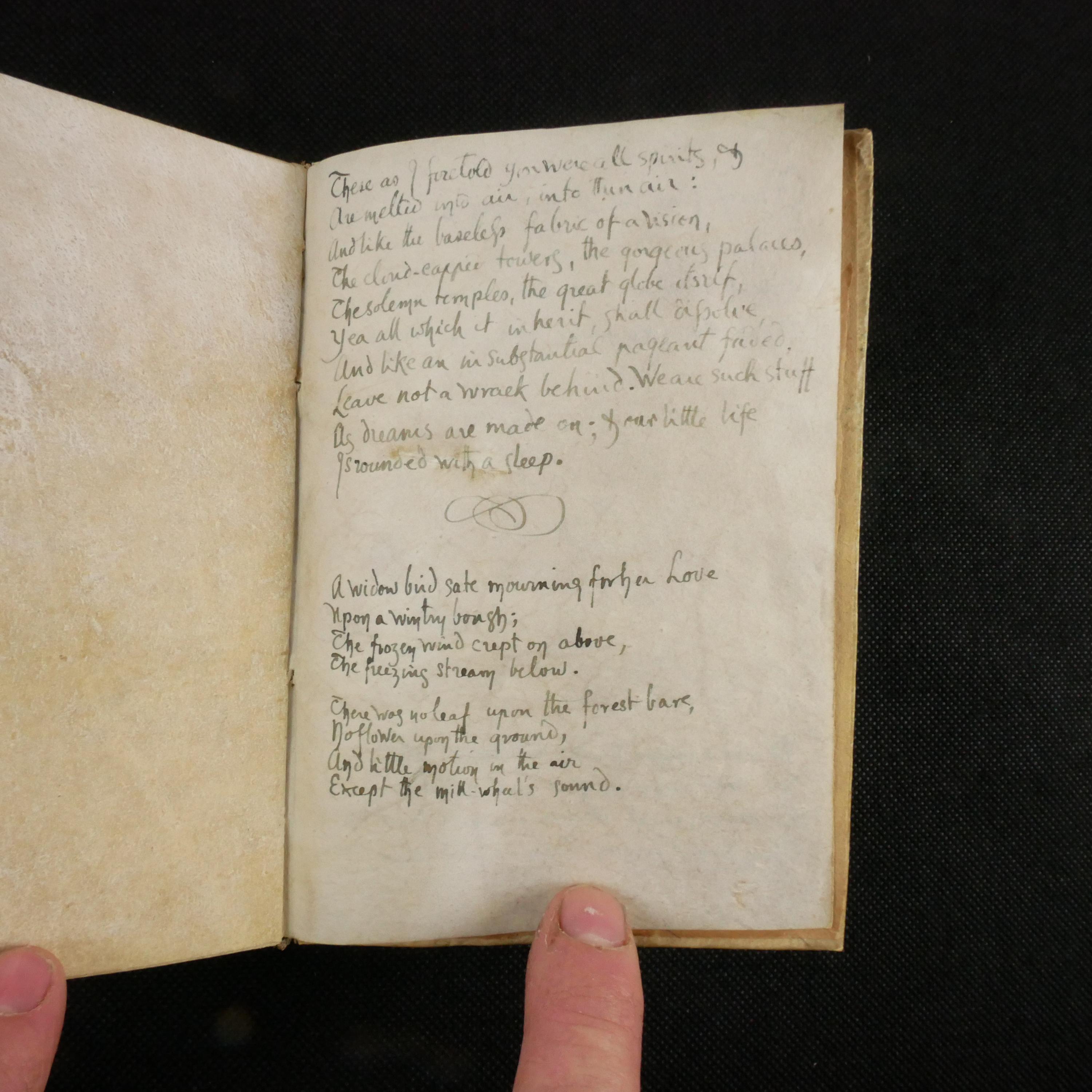 As a whole, we can infer that the author was facing a loss (theme of loss), highly educated (the original poetic works make reference to a wide swath of classical themes) and financially well-off (vellum notebook).