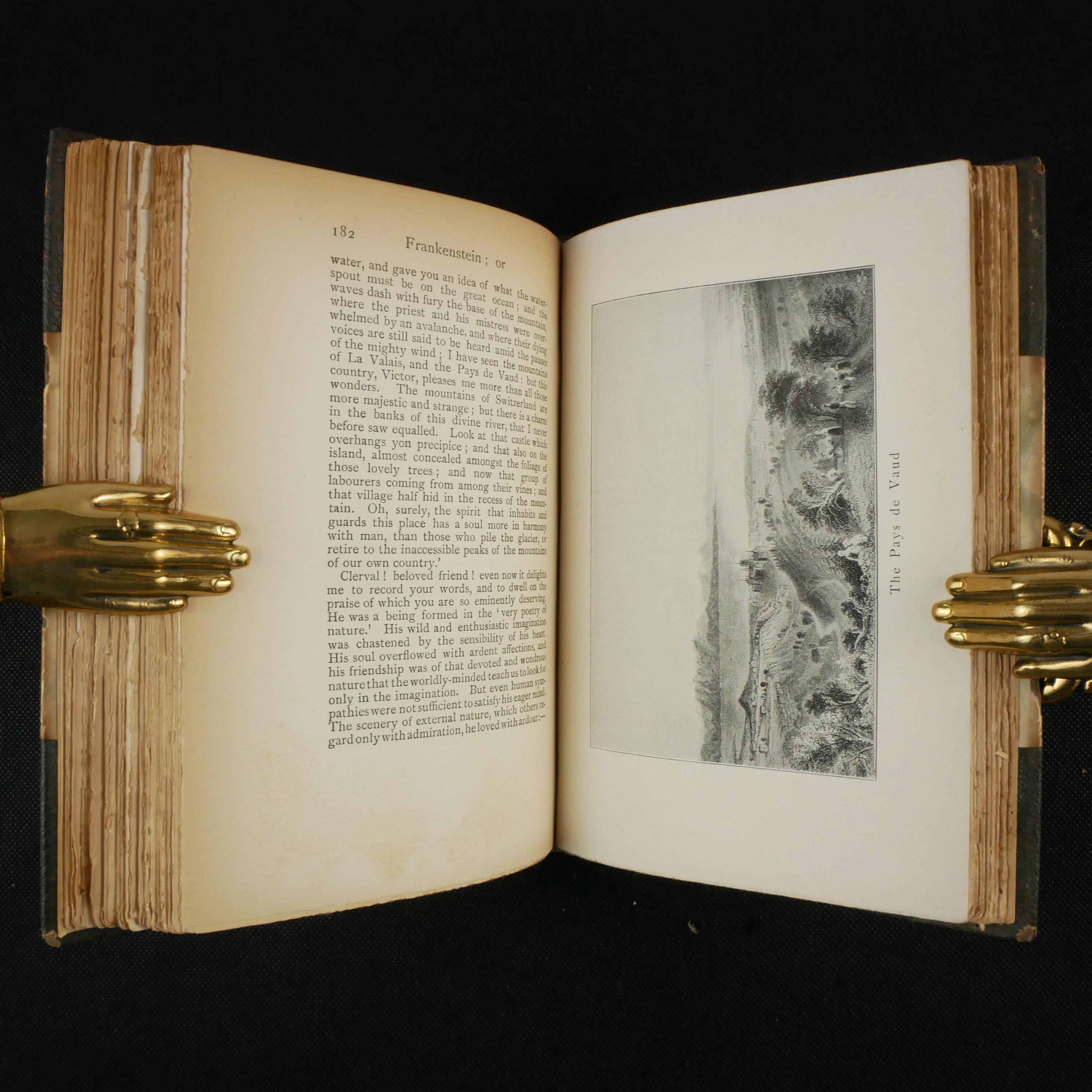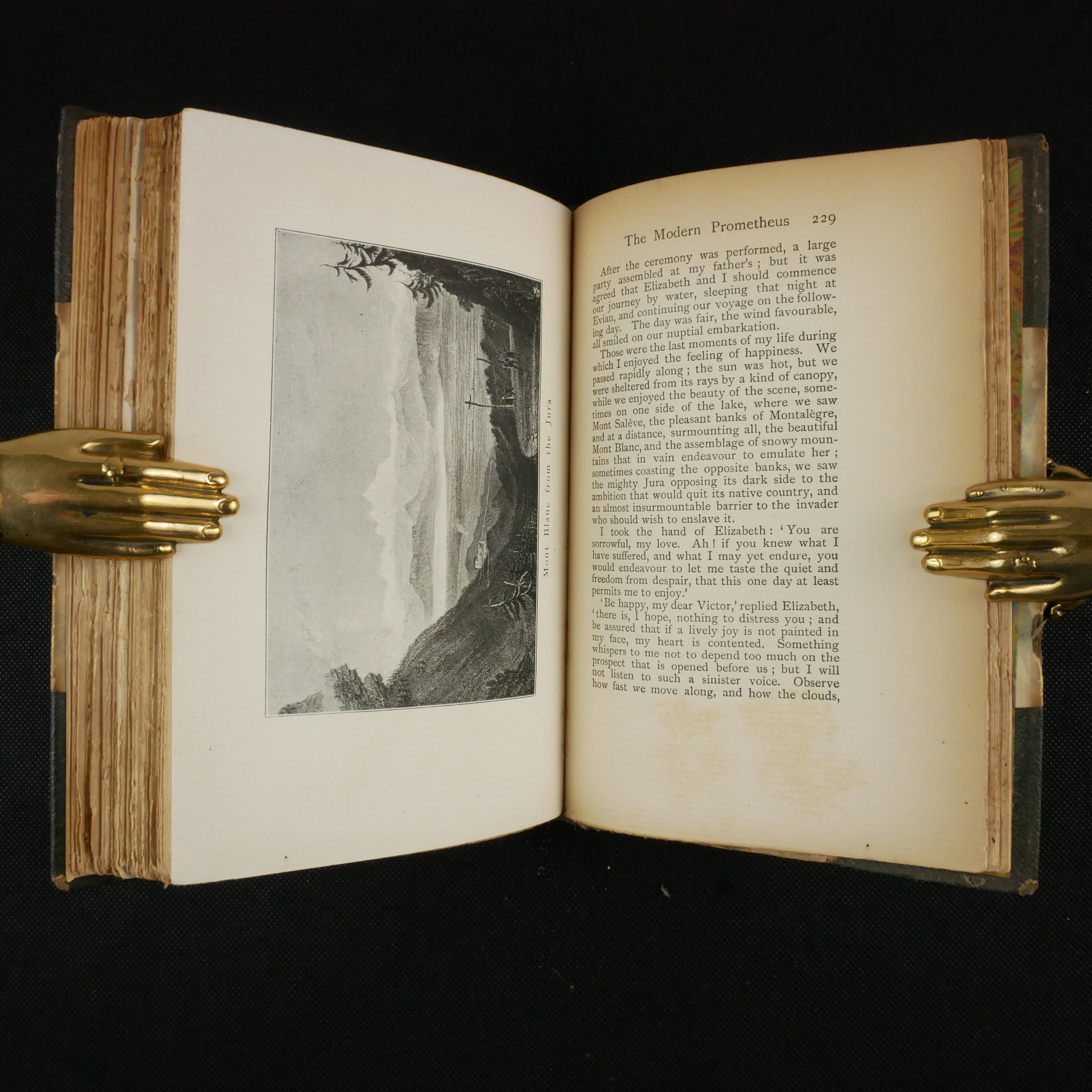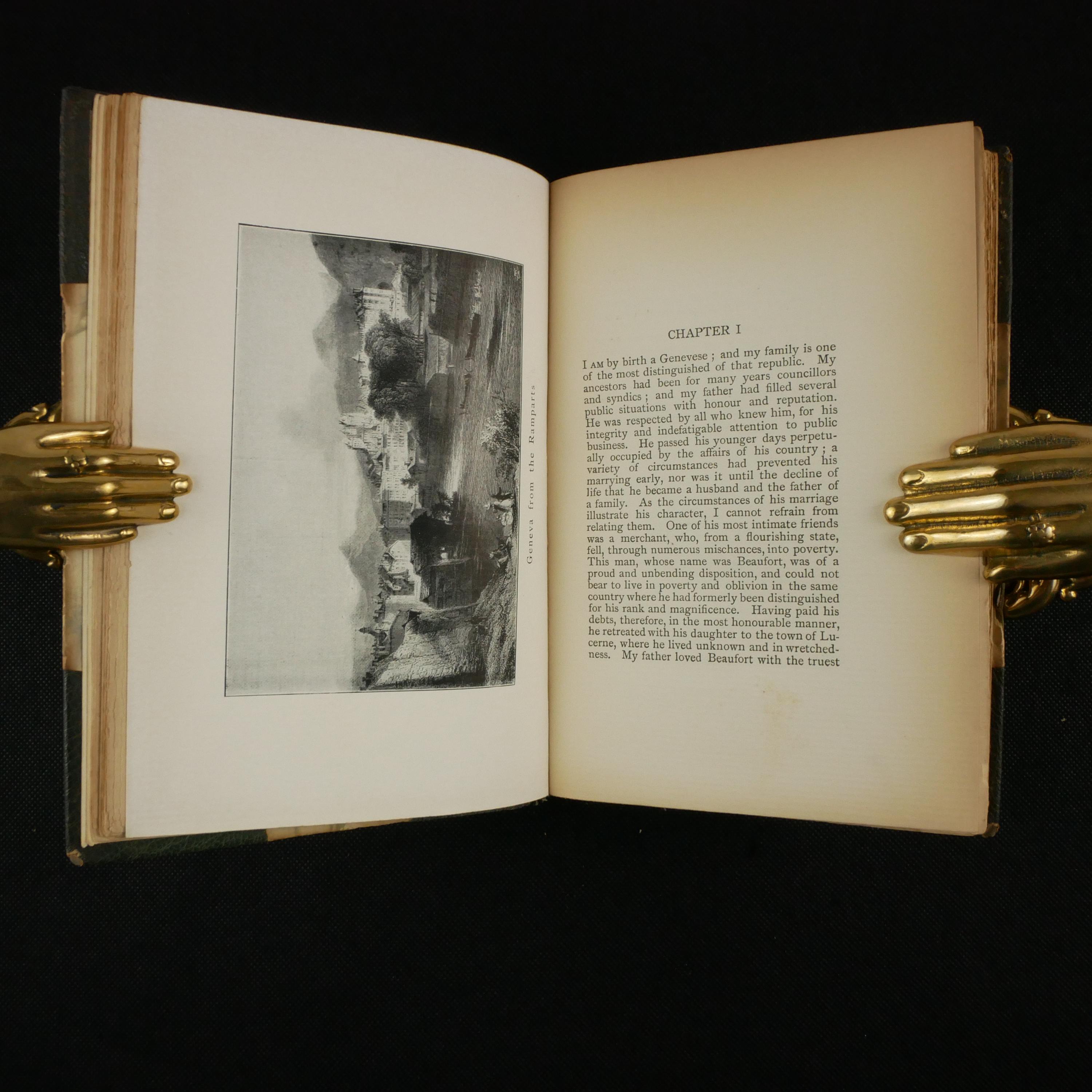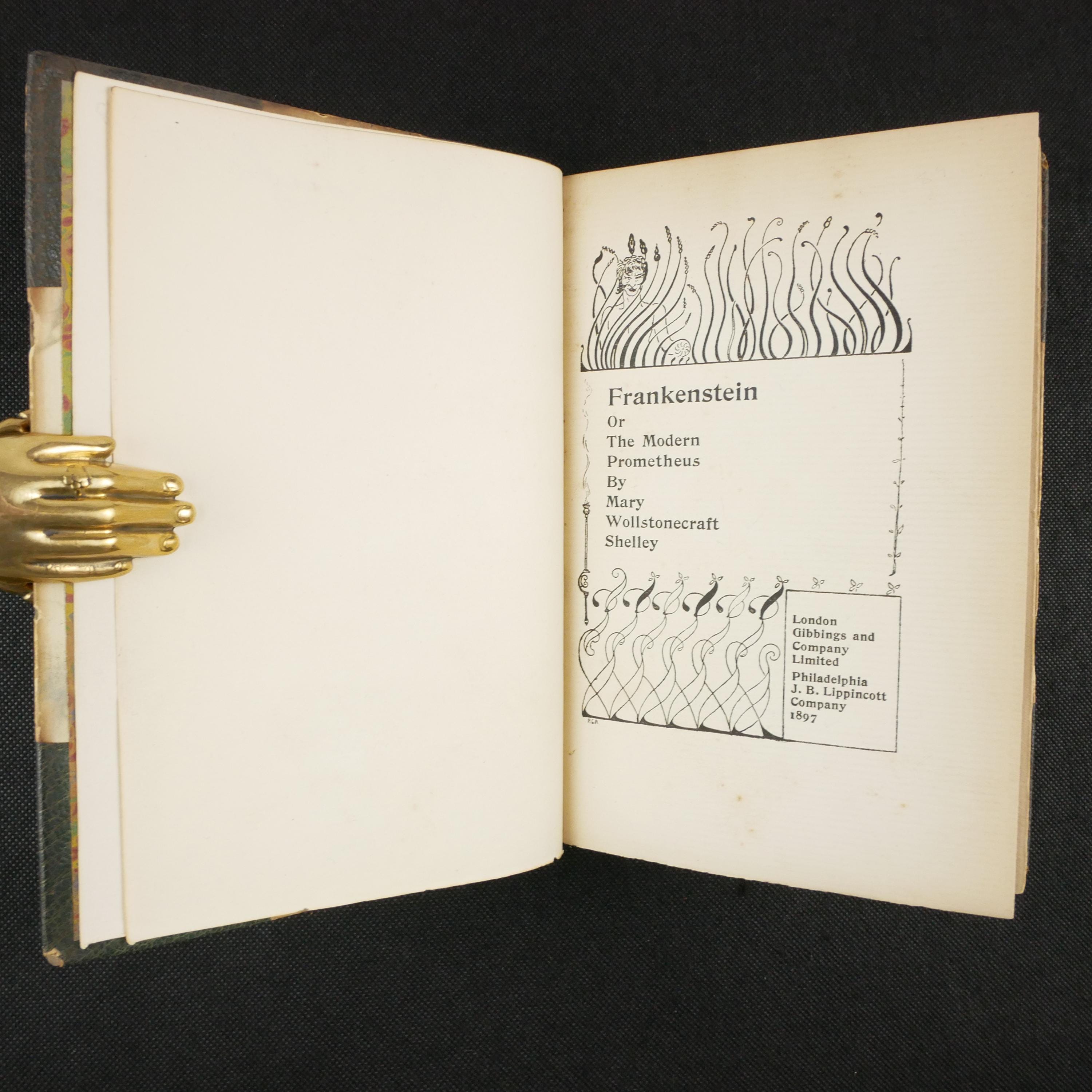 The first illustrated American edition of Frankenstein, with tentative illustrations of landscapes and one title page depiction of the monster, in the Art Nouveau style.