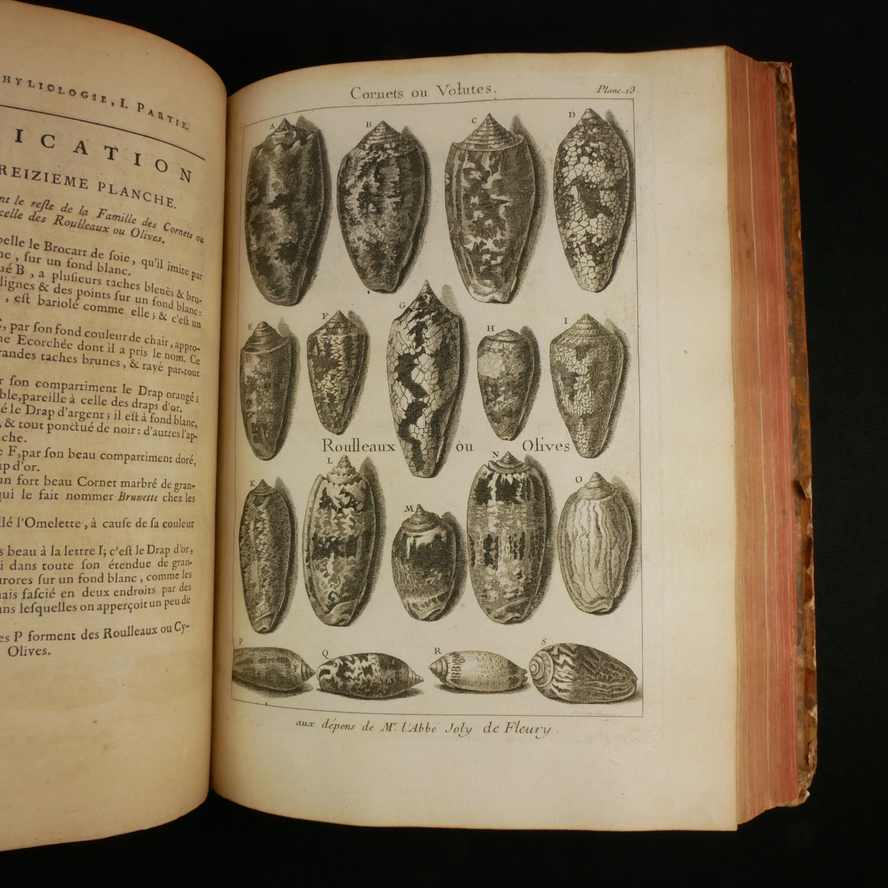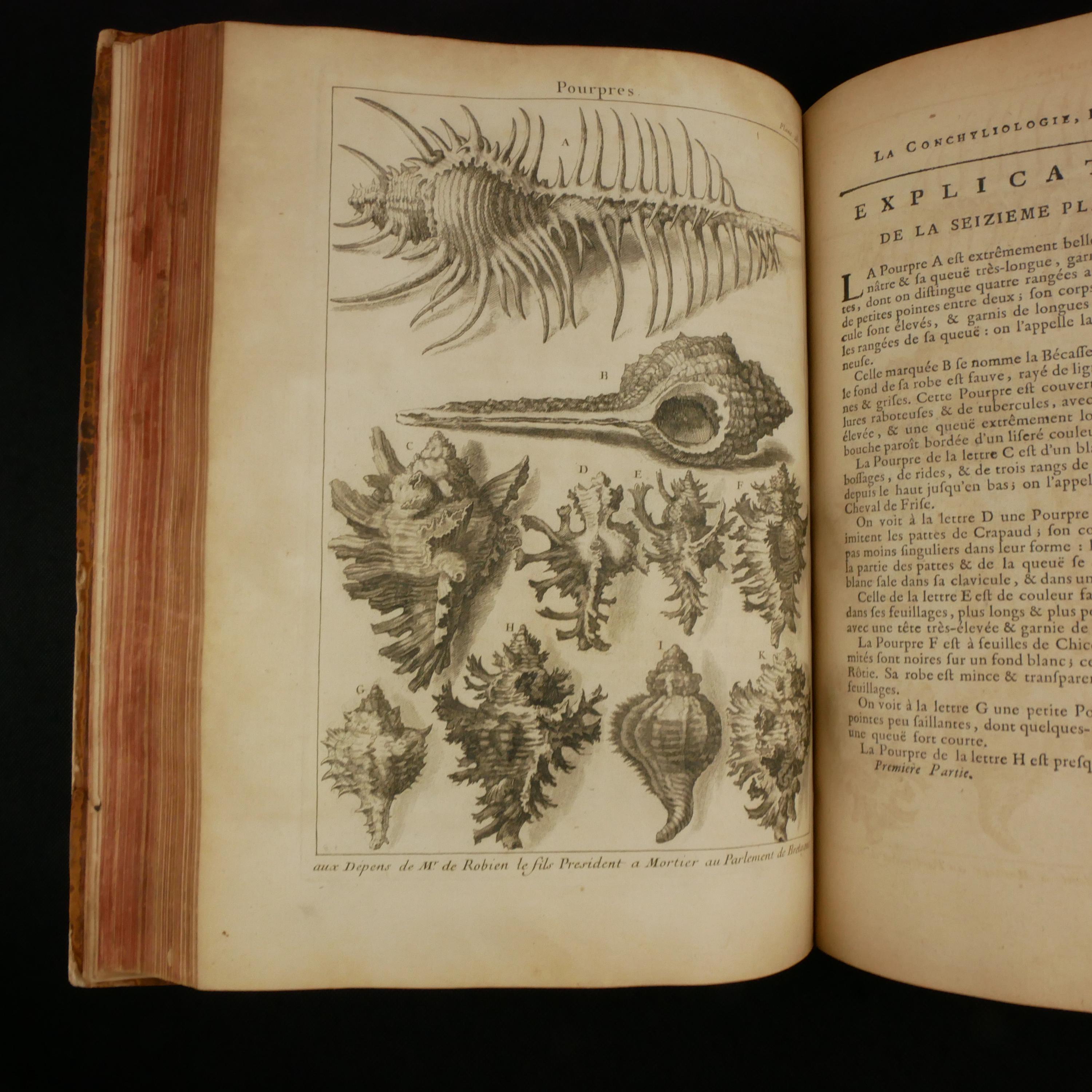 Both of the parts, and all 41 plates of Antoine-Joseph Dezallier d'Arengville's seminal work on shells and the animals that make them.