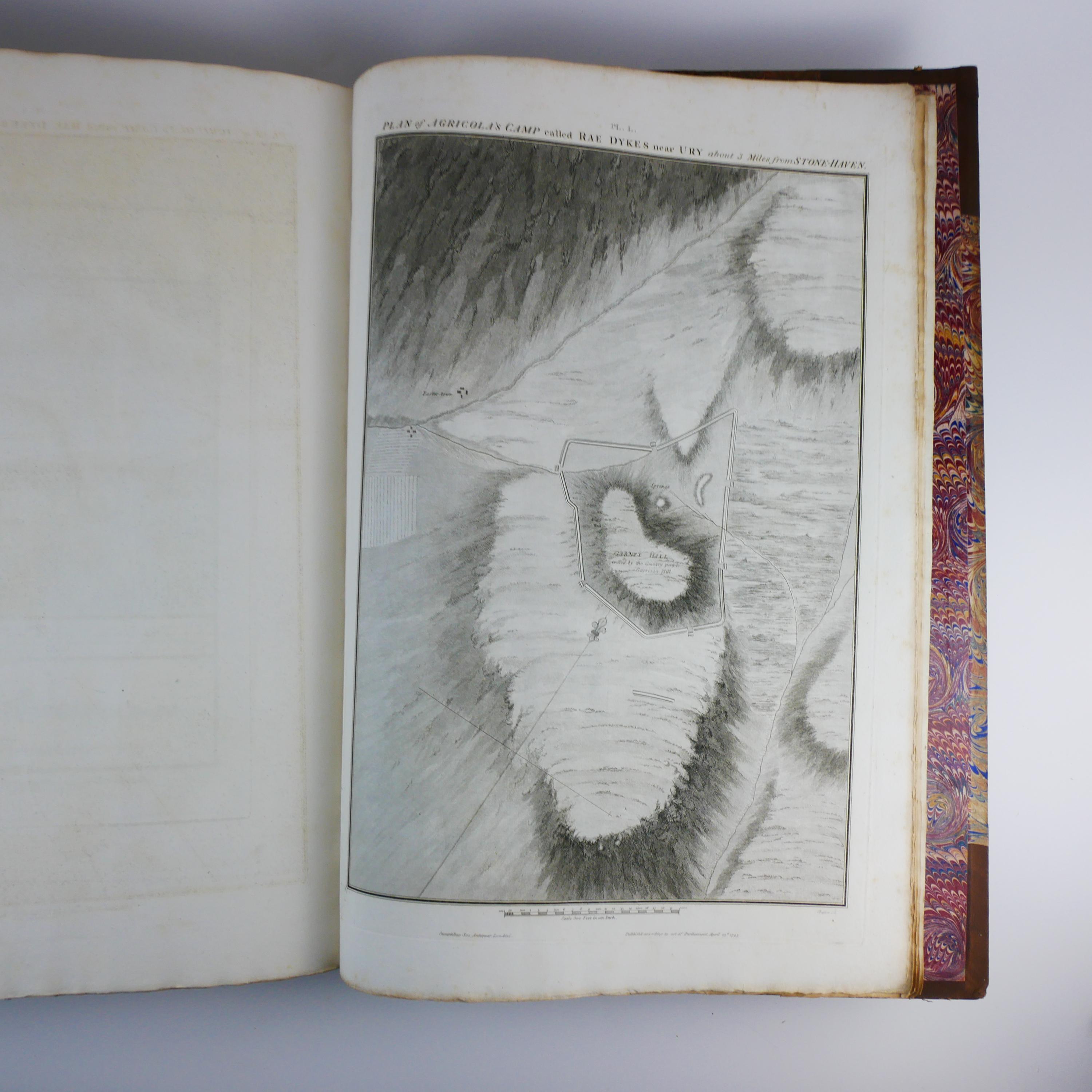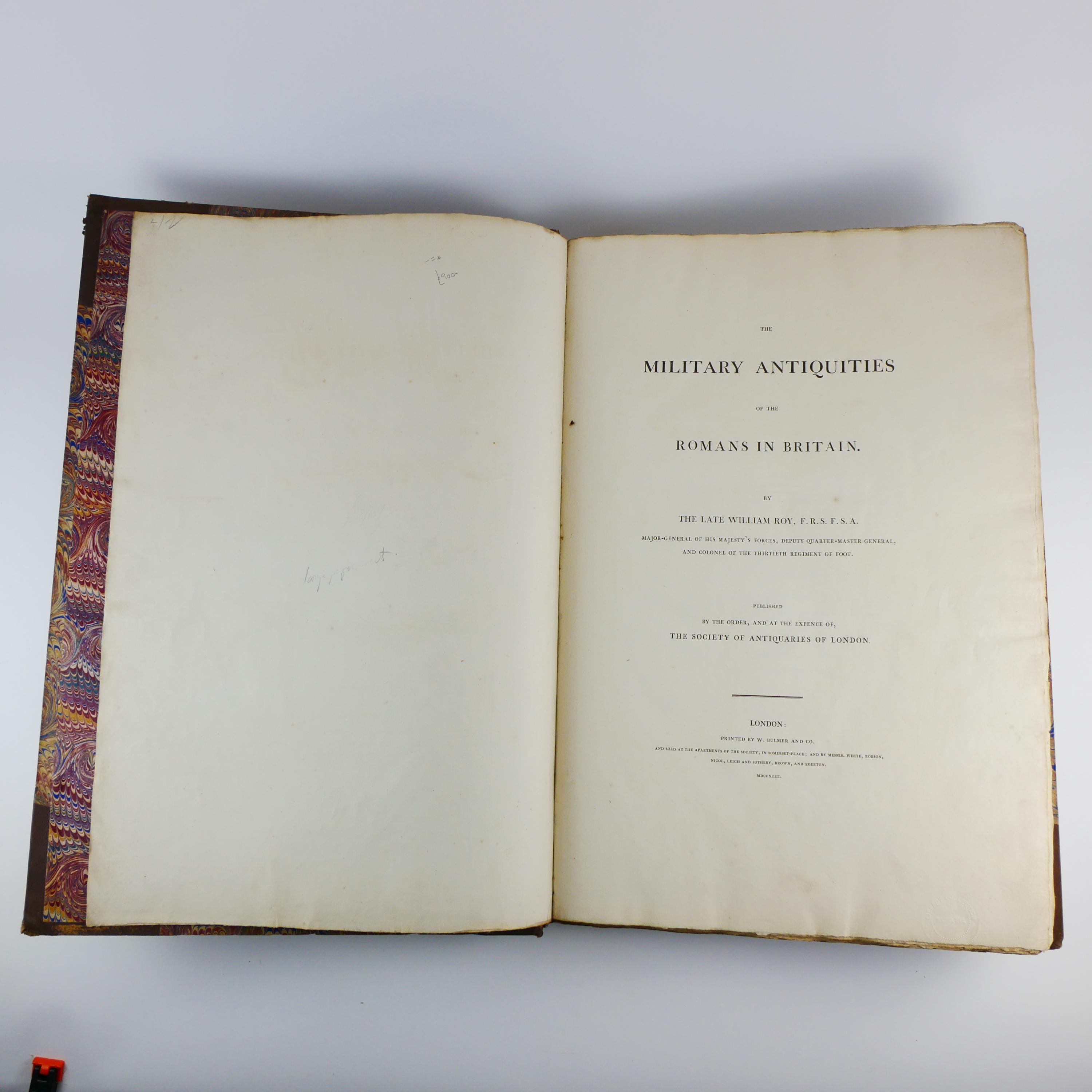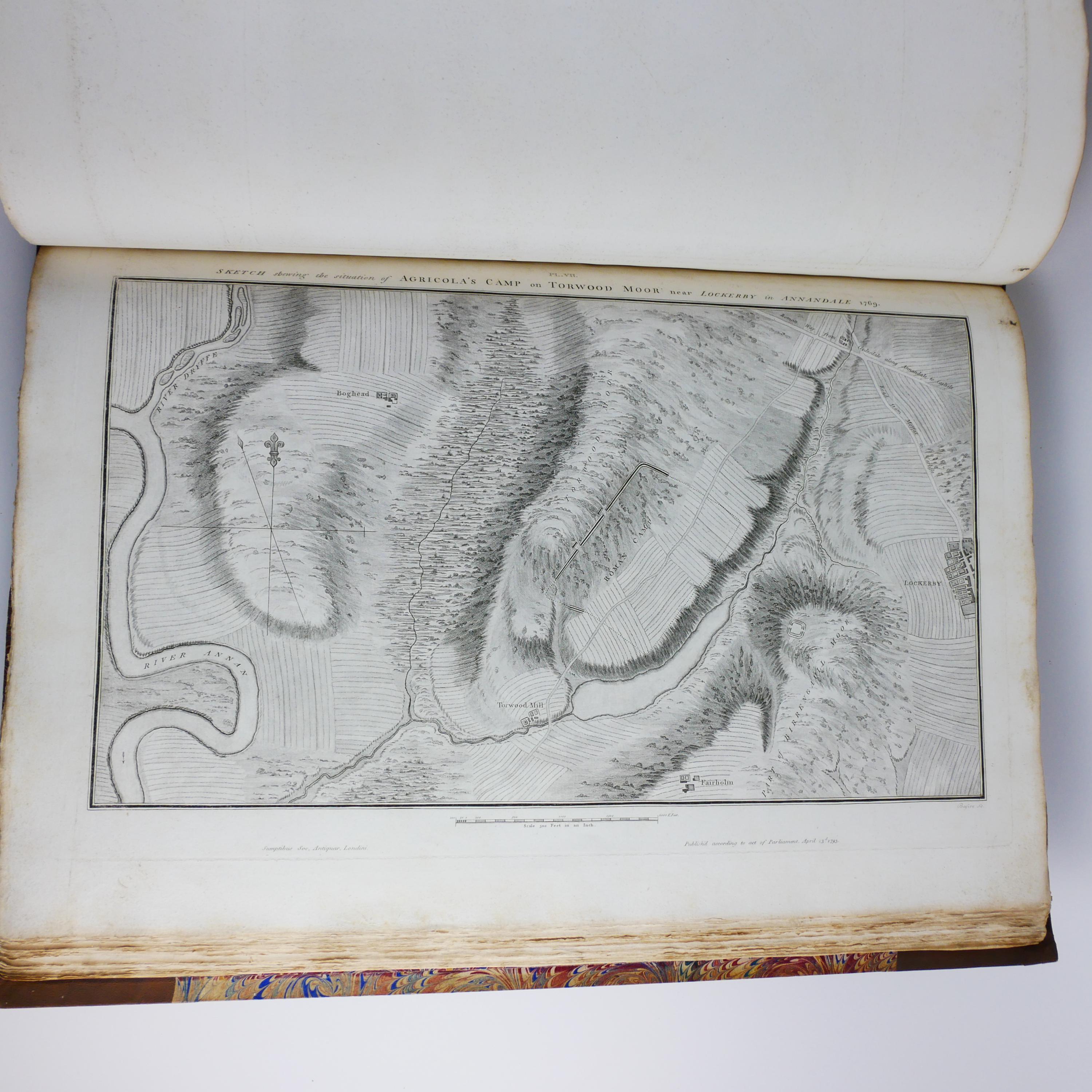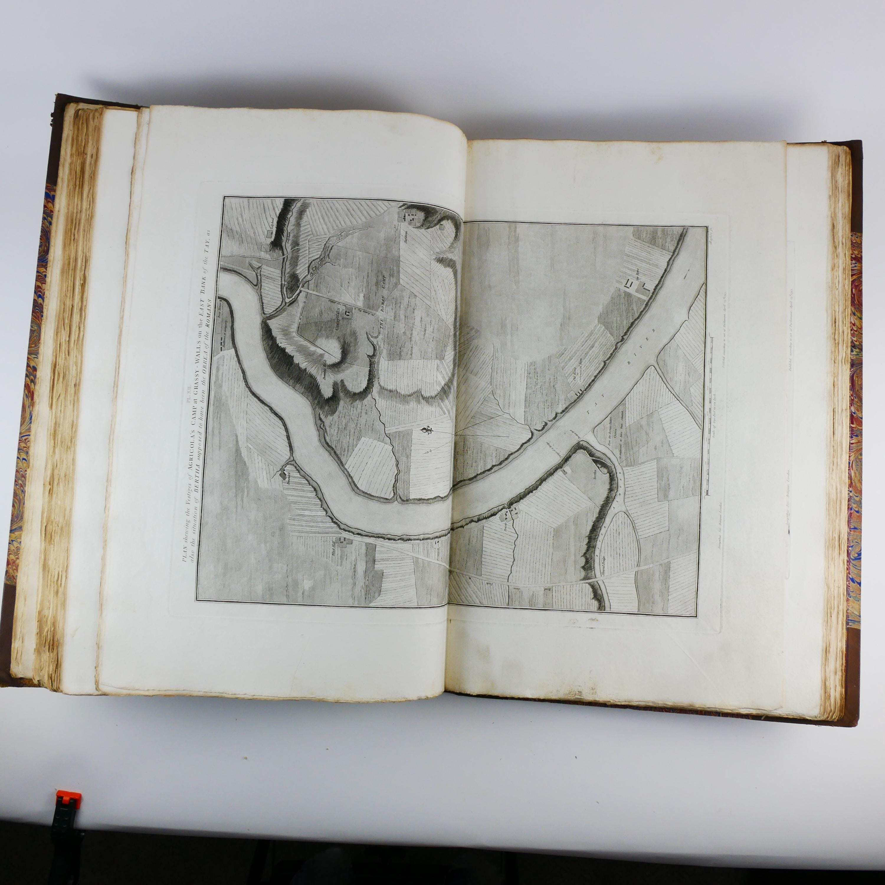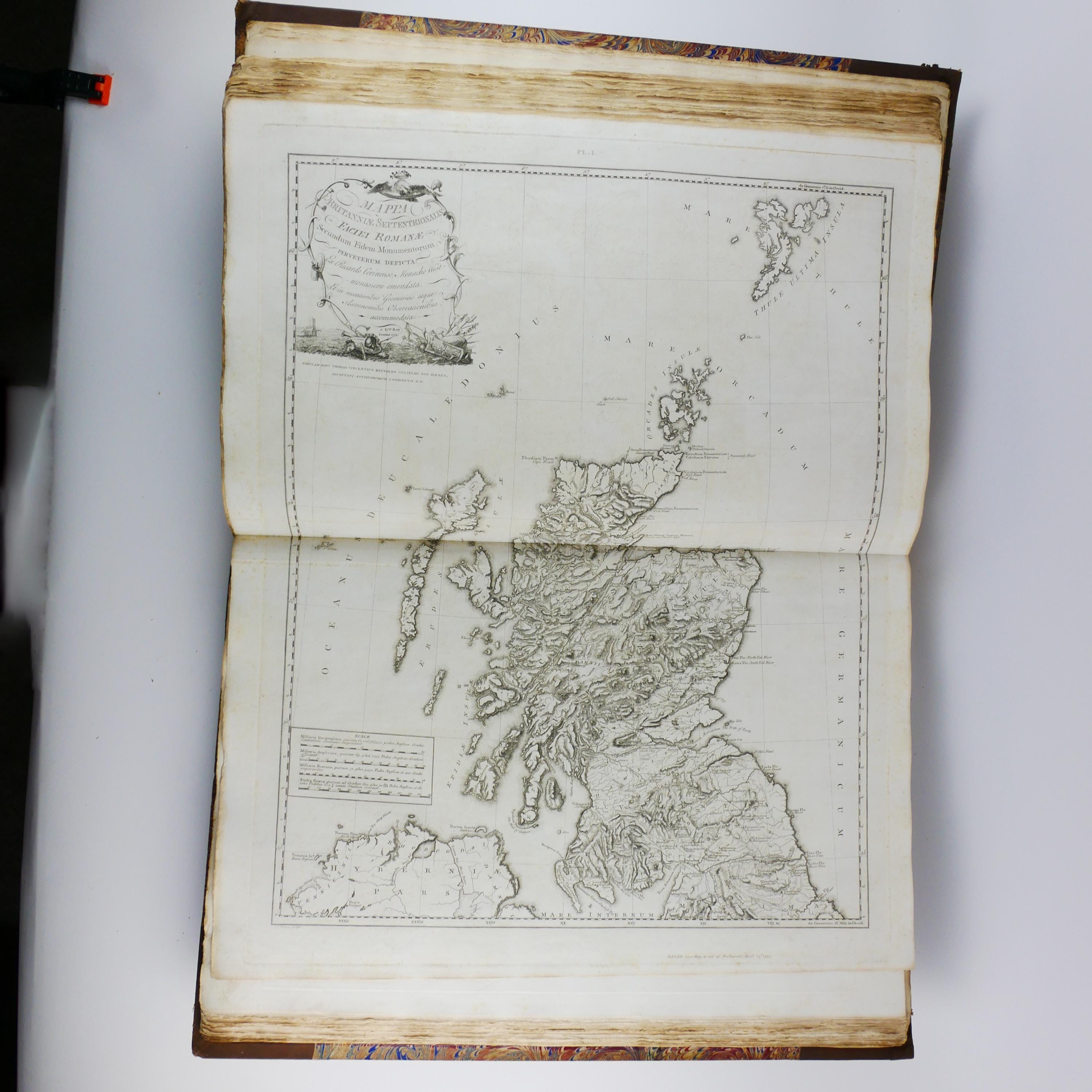William Roy's monumental work, The Military Antiquities of the Romans in Britain. Produced in imperial folio size (roughly 56.5 cm tall), with 51 plates (some folding, including a double tri-fold of the Roman Wall).