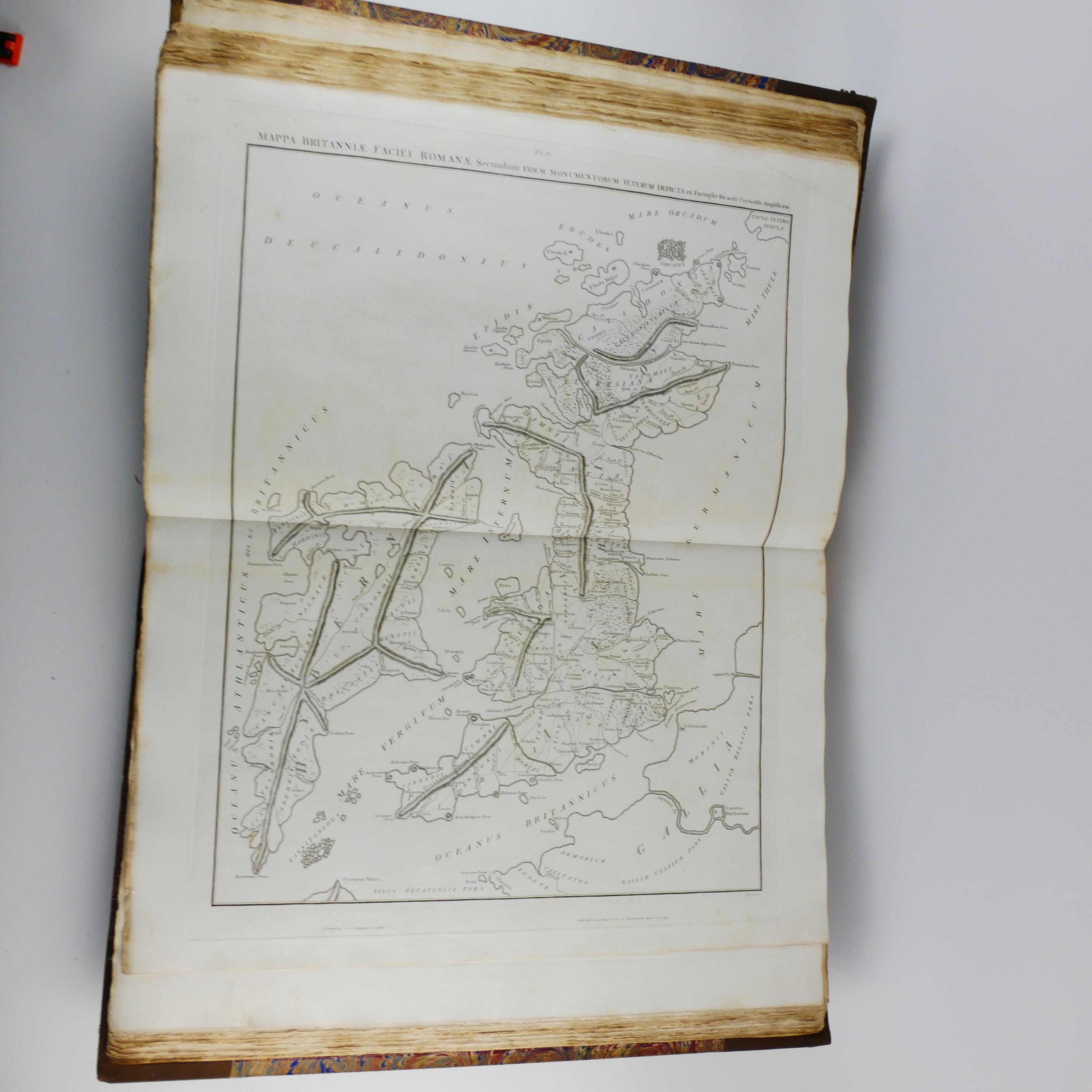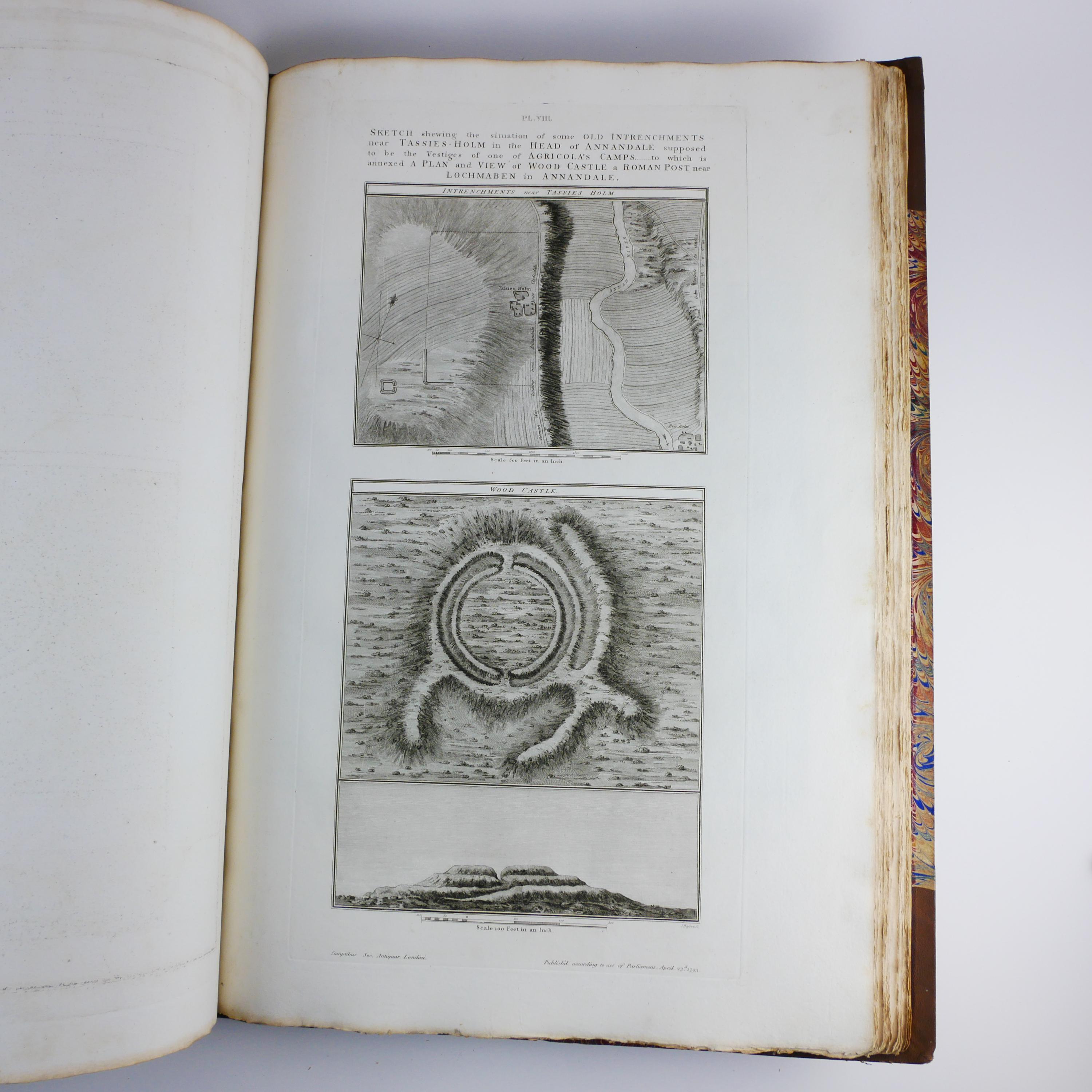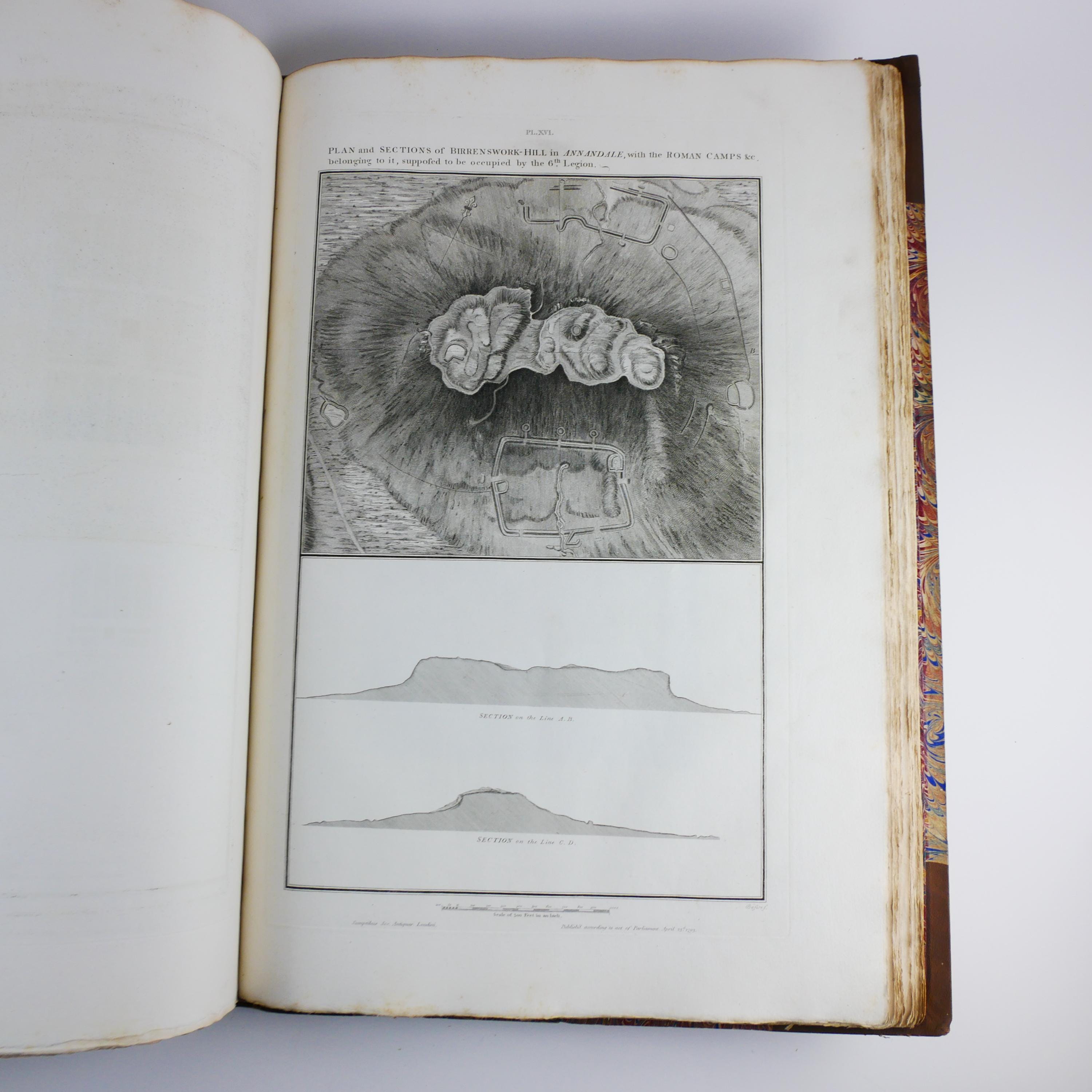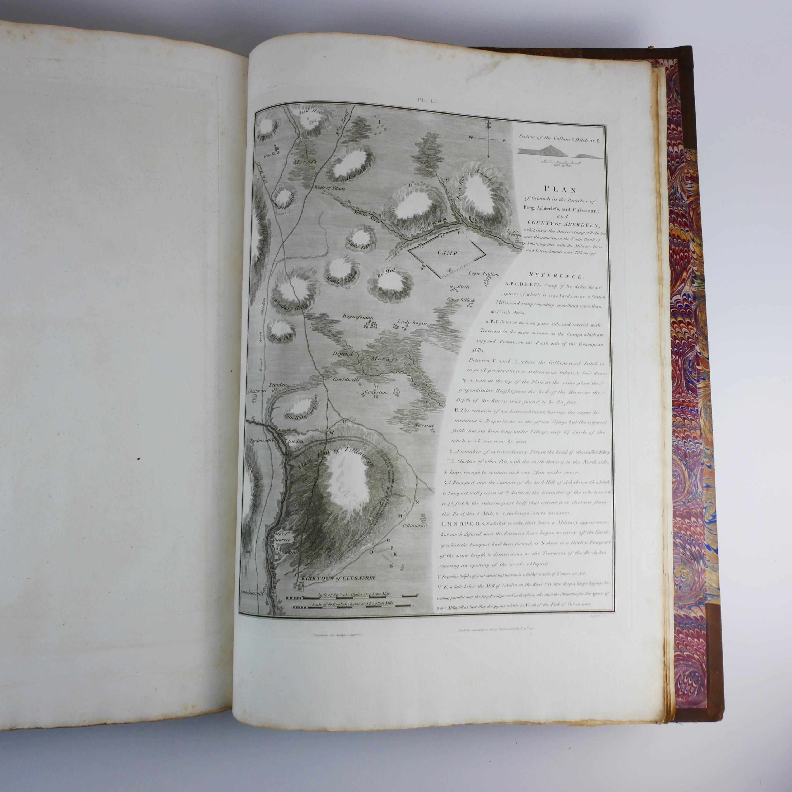 William Roy's monumental work, The Military Antiquities of the Romans in Britain. Produced in imperial folio size (roughly 56.5 cm tall), with 51 plates (some folding, including a double tri-fold of the Roman Wall).