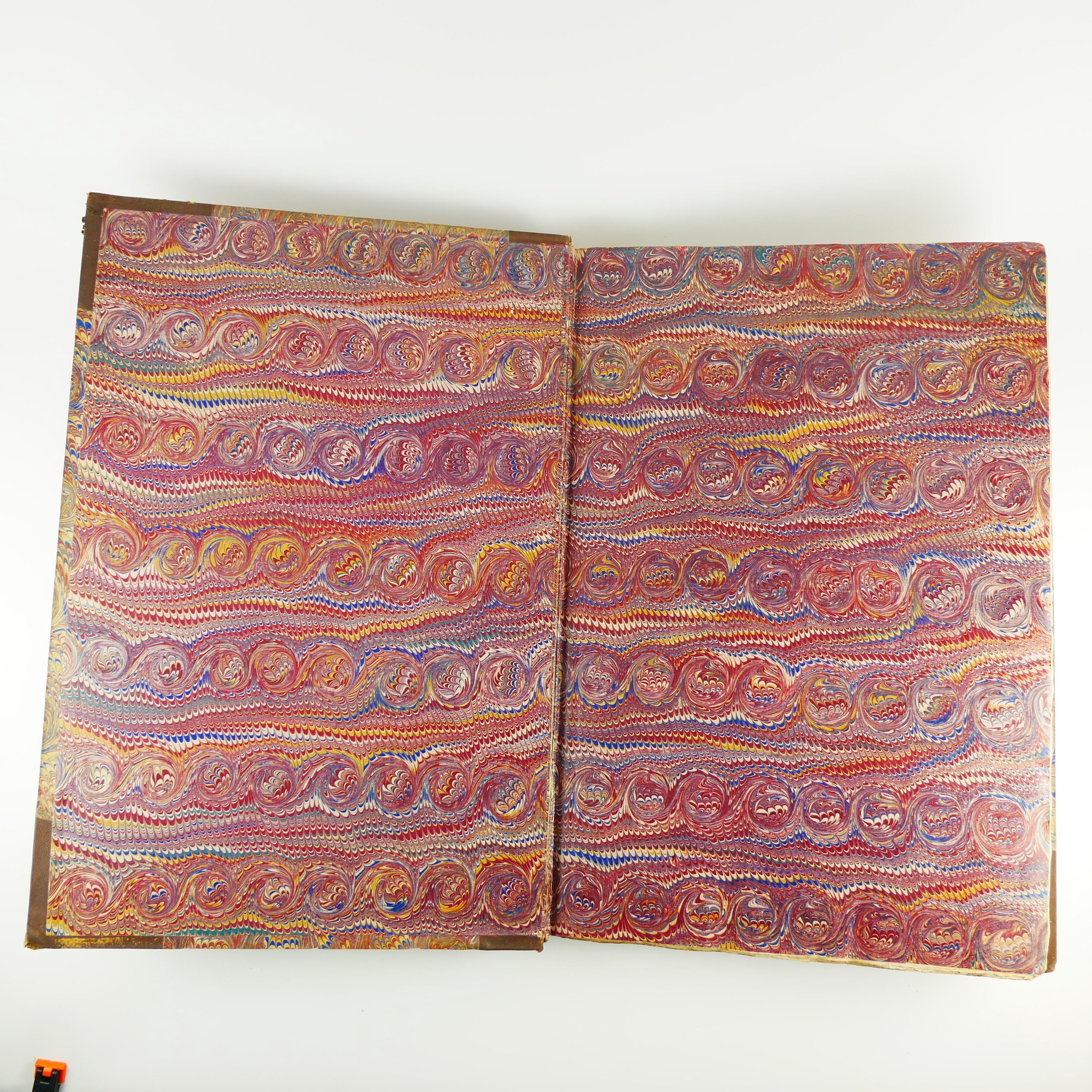 Measures approx. 56.5 x 38 x 4 cm. Hardcover, with leather corners and spine. Marbled paper covering boards. Spine with six raised bands, title in gilt in one compartment. Marbled endpapers. Maps/illustrations.
