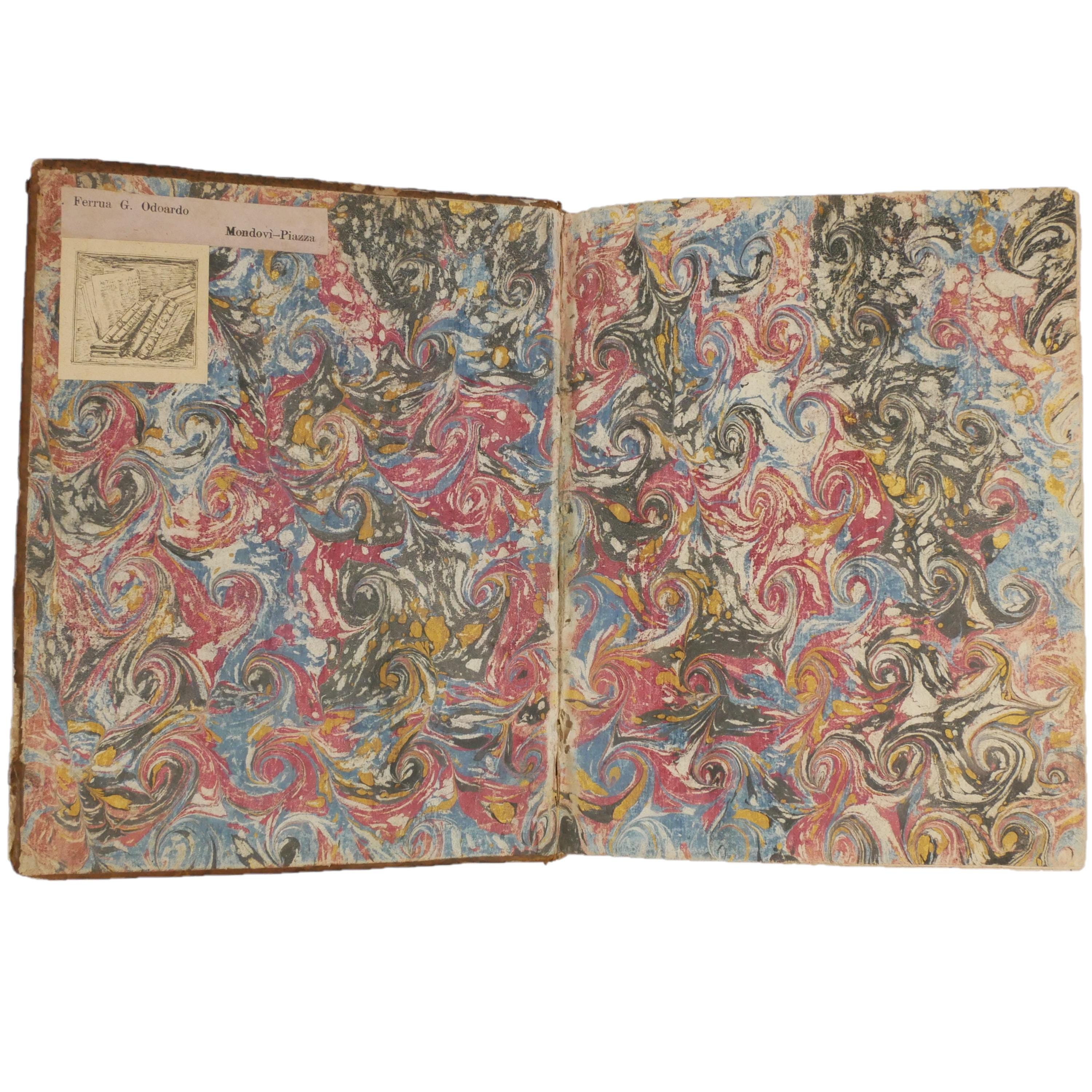 This book was sold in the 19th century by the Mondovi-Piazza bookseller Ferrua, giving context that this book resided in Northern Italy, where the Bovio family was active. Also, in the 20th century the Northern Italian scholar Aldo Maffey owned the book.