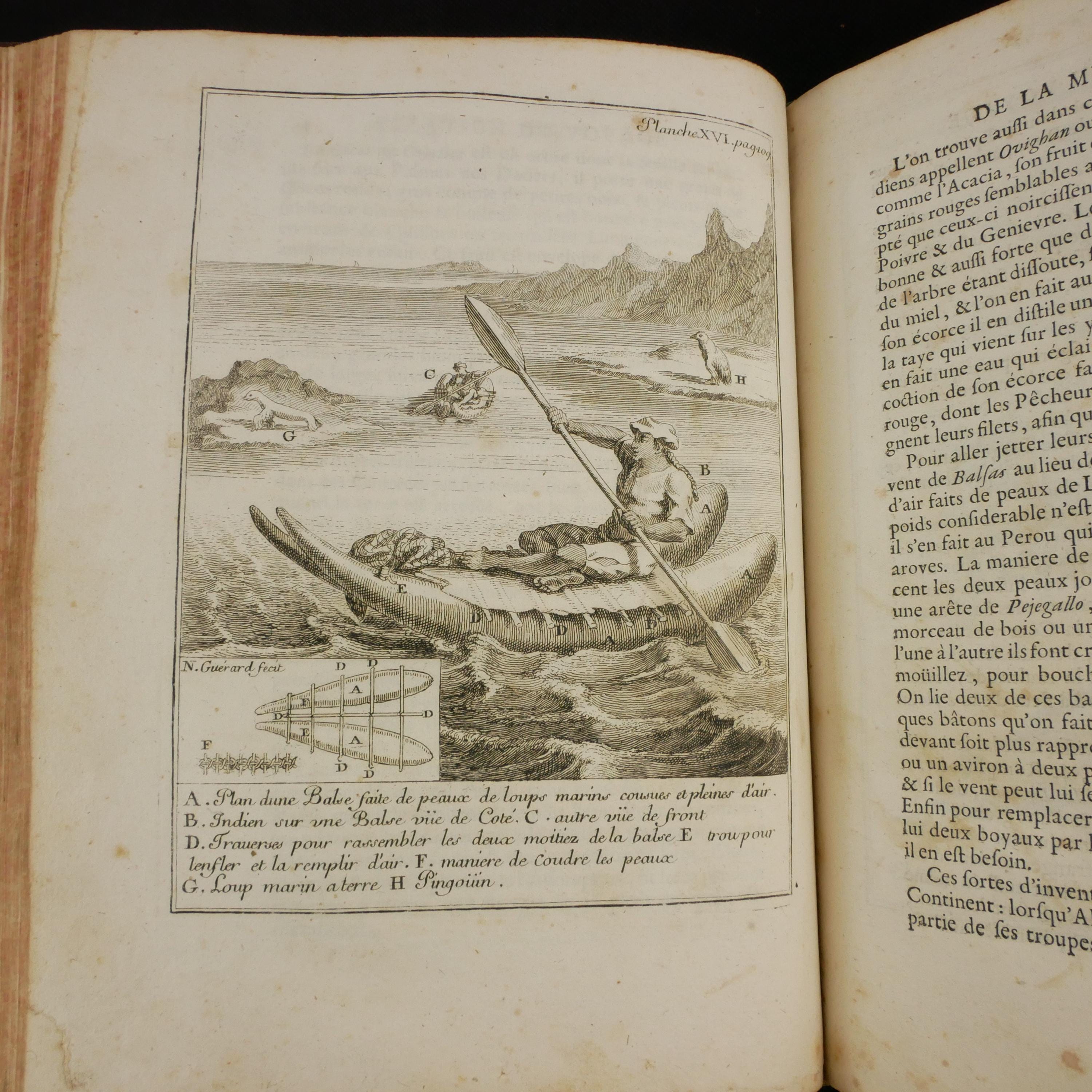 Frazier's engravings capture fascinating things including the large strawberries, but also South American kayak-like vessels, lobsters, seahorses, llamas, native families, etc. There's also musical notes of songs he heard.