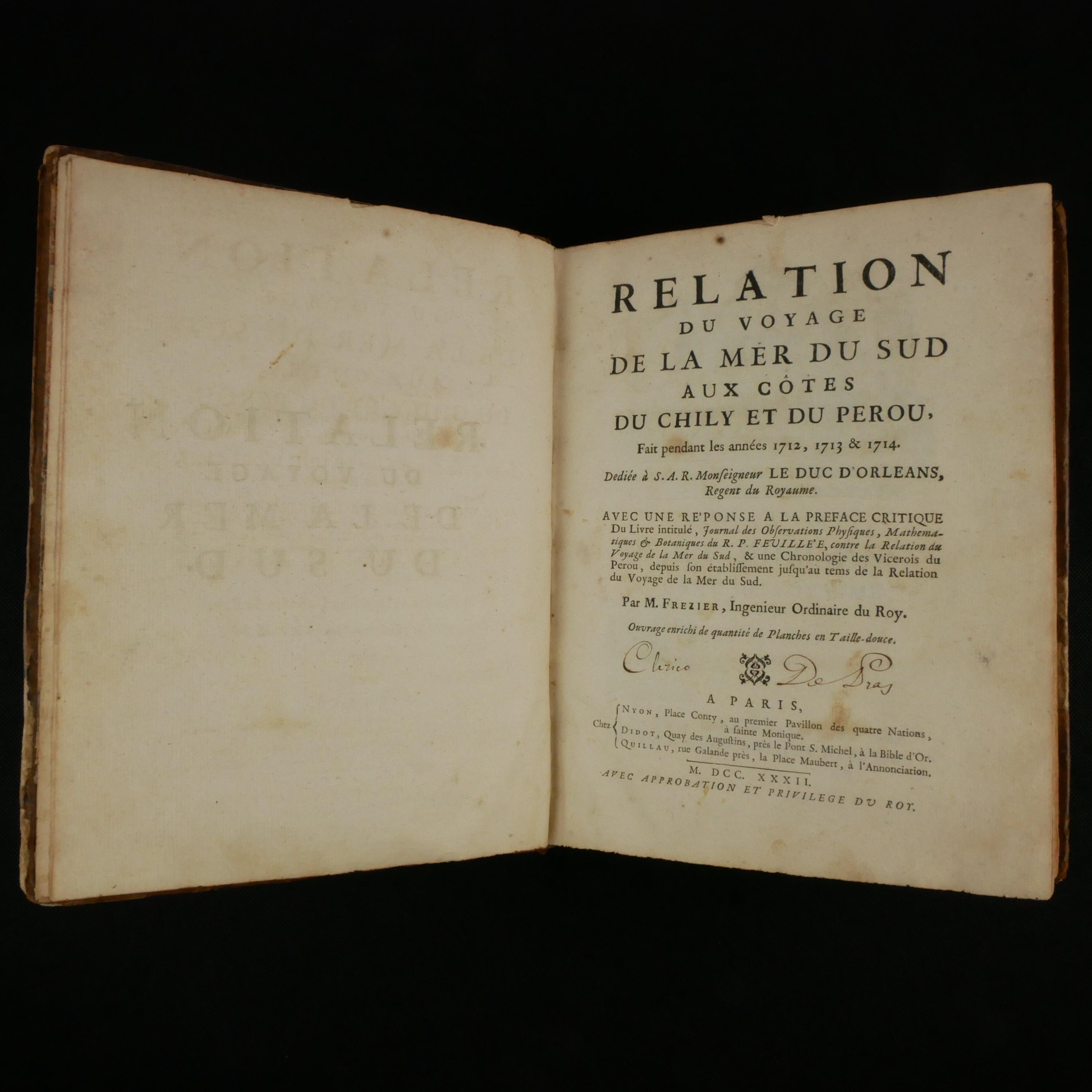 The 1732 edition of Frezier's Relation du Voyage de la Mer Du Sud; in this 2nd edition Frezier adds a detailed response to criticism of his first edition.