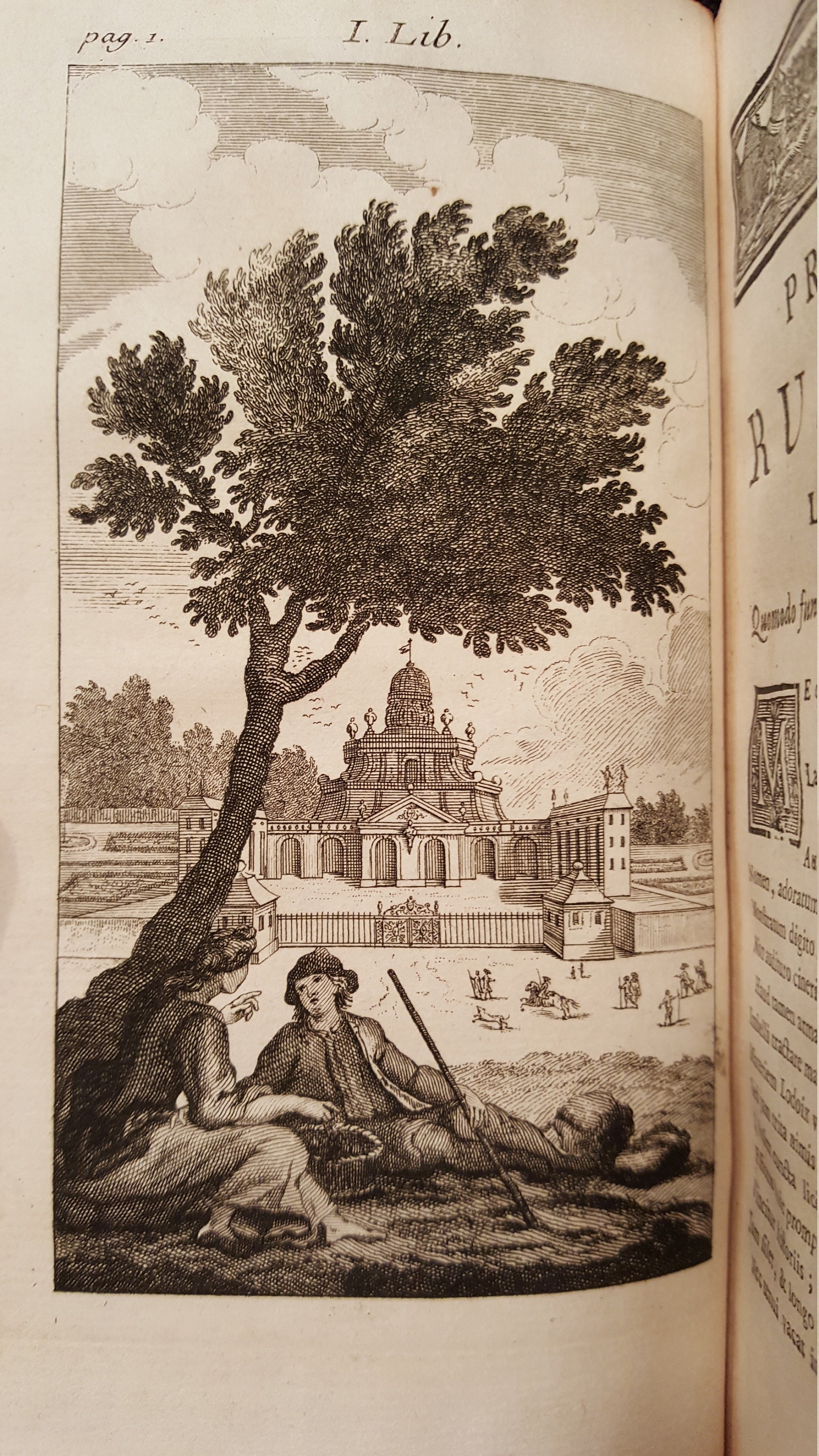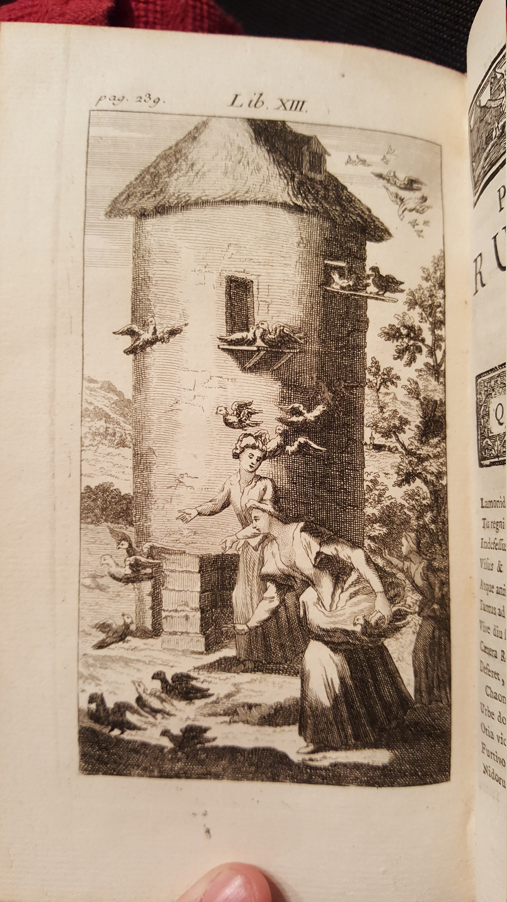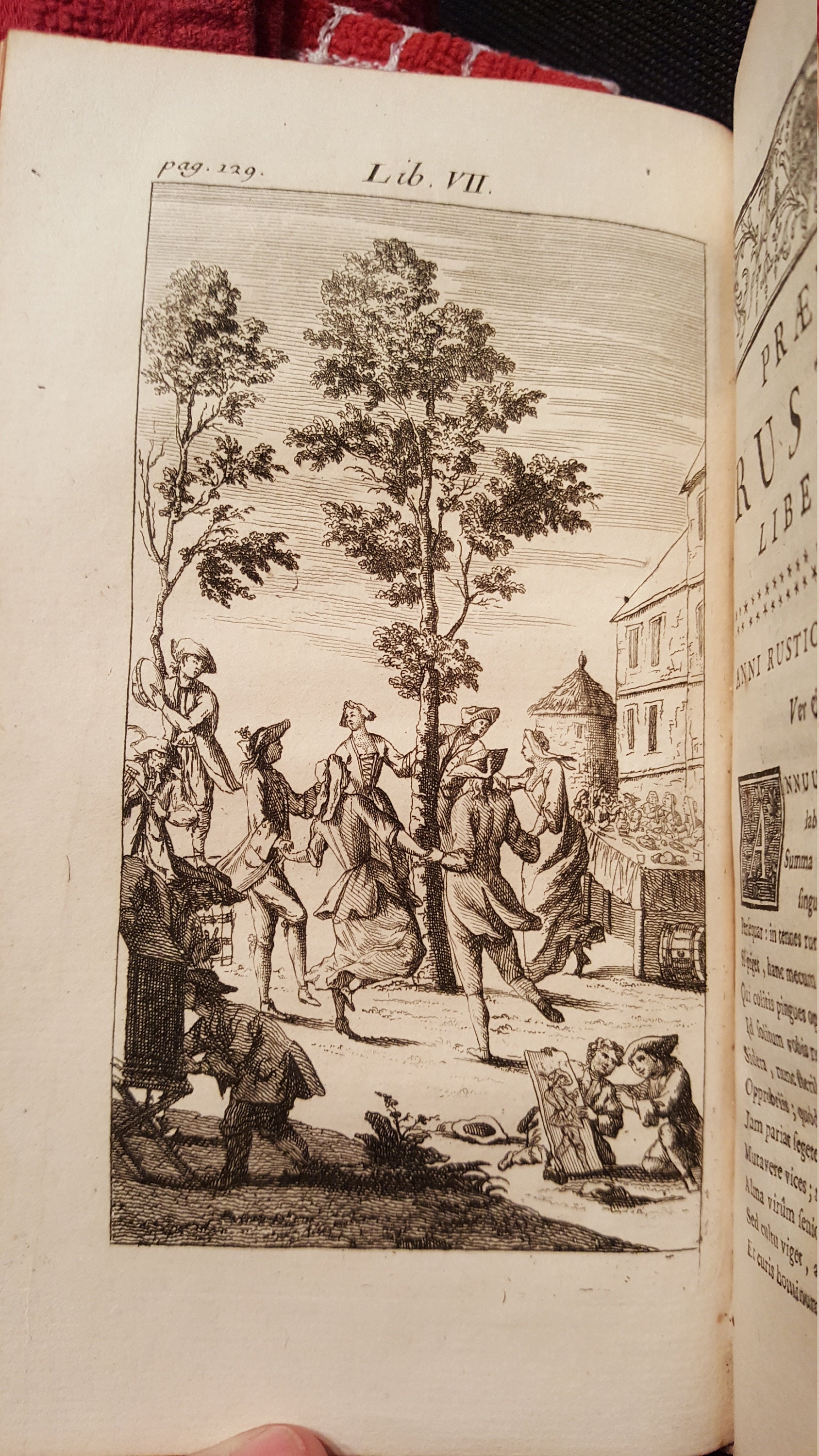 A handsome french binding, housing a beautiful antiquarian work praising the countryside, with 17 equally attractive woodcut illustrations. Praedium Rusticum , in 16 books, where Jacques Vaniere sings the work and the pleasures of the countryside. "In this poem, he has approached the skill of the author of the Georgics, as much as could any modern." - Universal Dictionary of History and Geography 1878