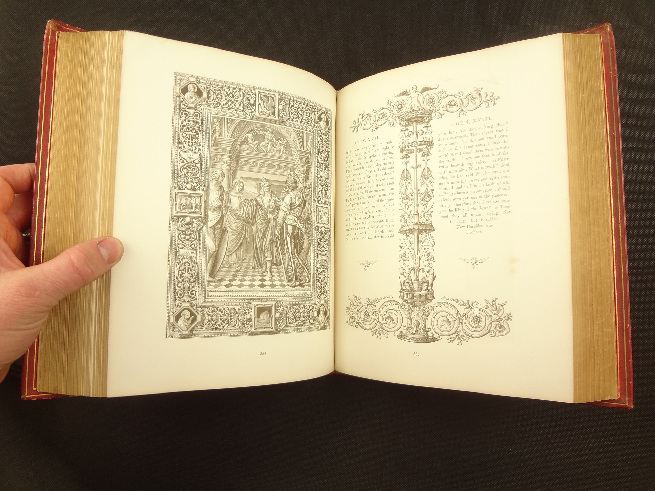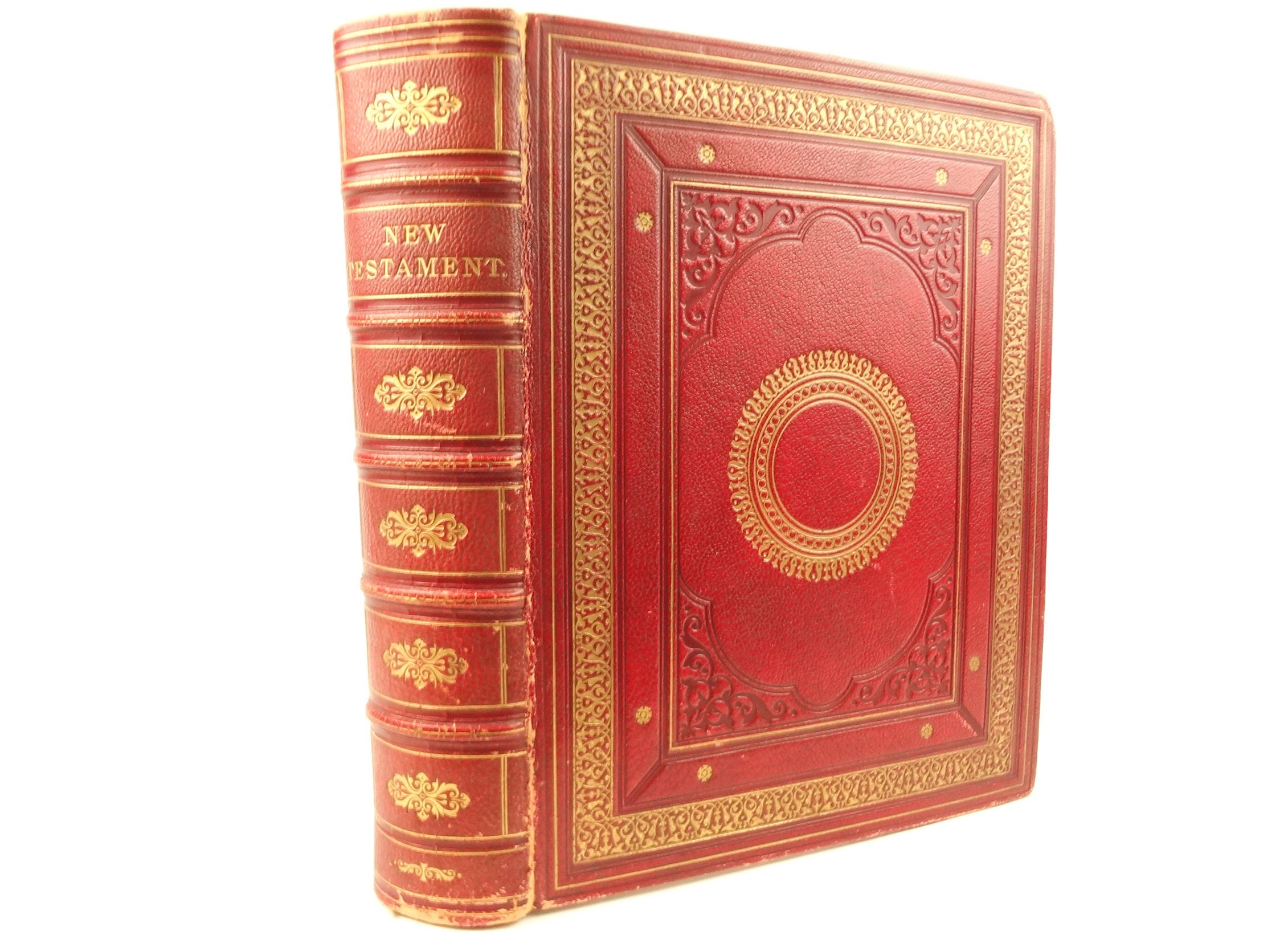 A beautiful and lush New Testament, finely bound at Riviere. All pages have decorative borders at the least, with many having engravings, initial letters, etc.. Engravings on wood after Raphael, Titian, Da Vinci (The Last Supper, unattributed on title page), among many others.
