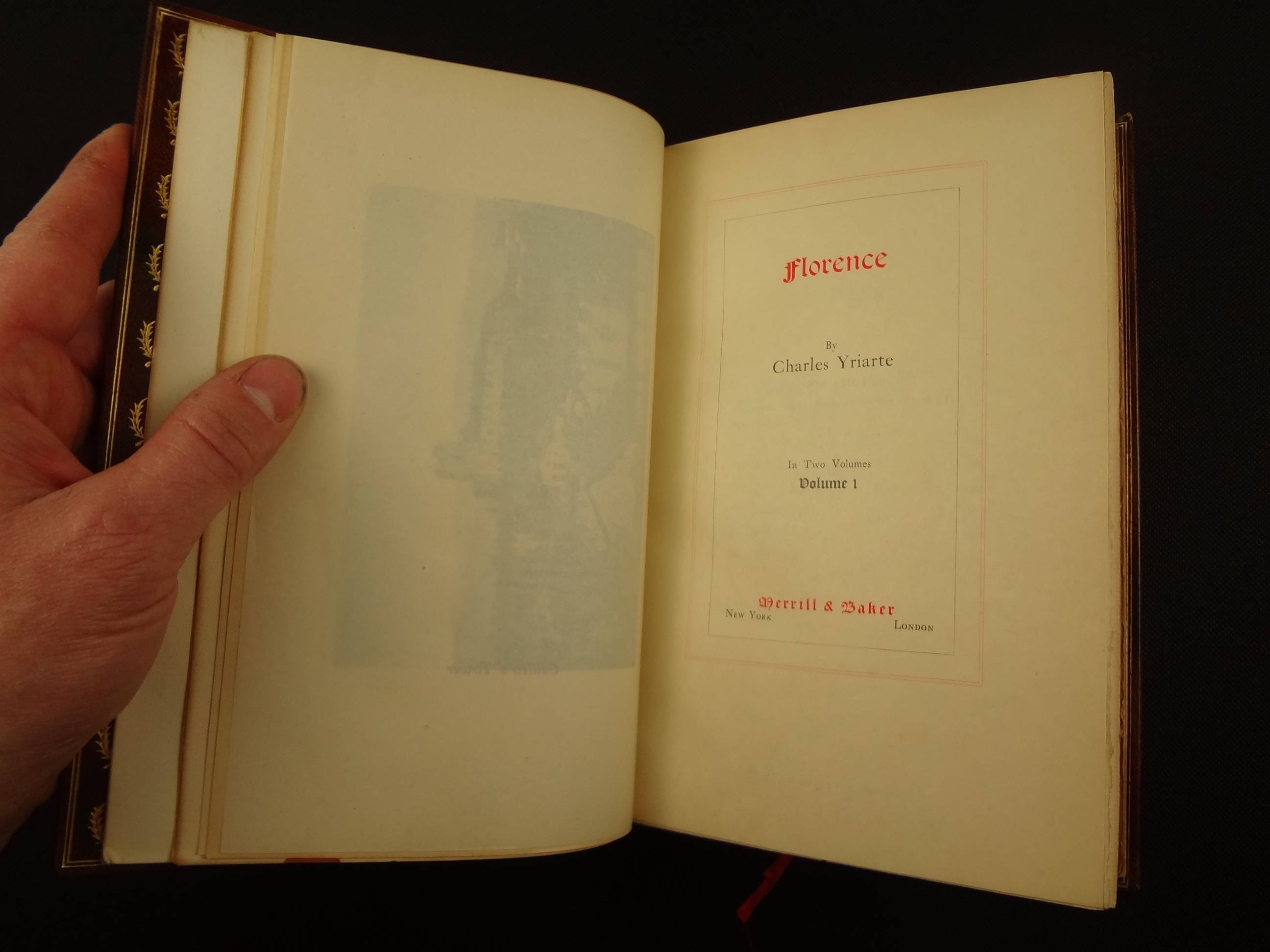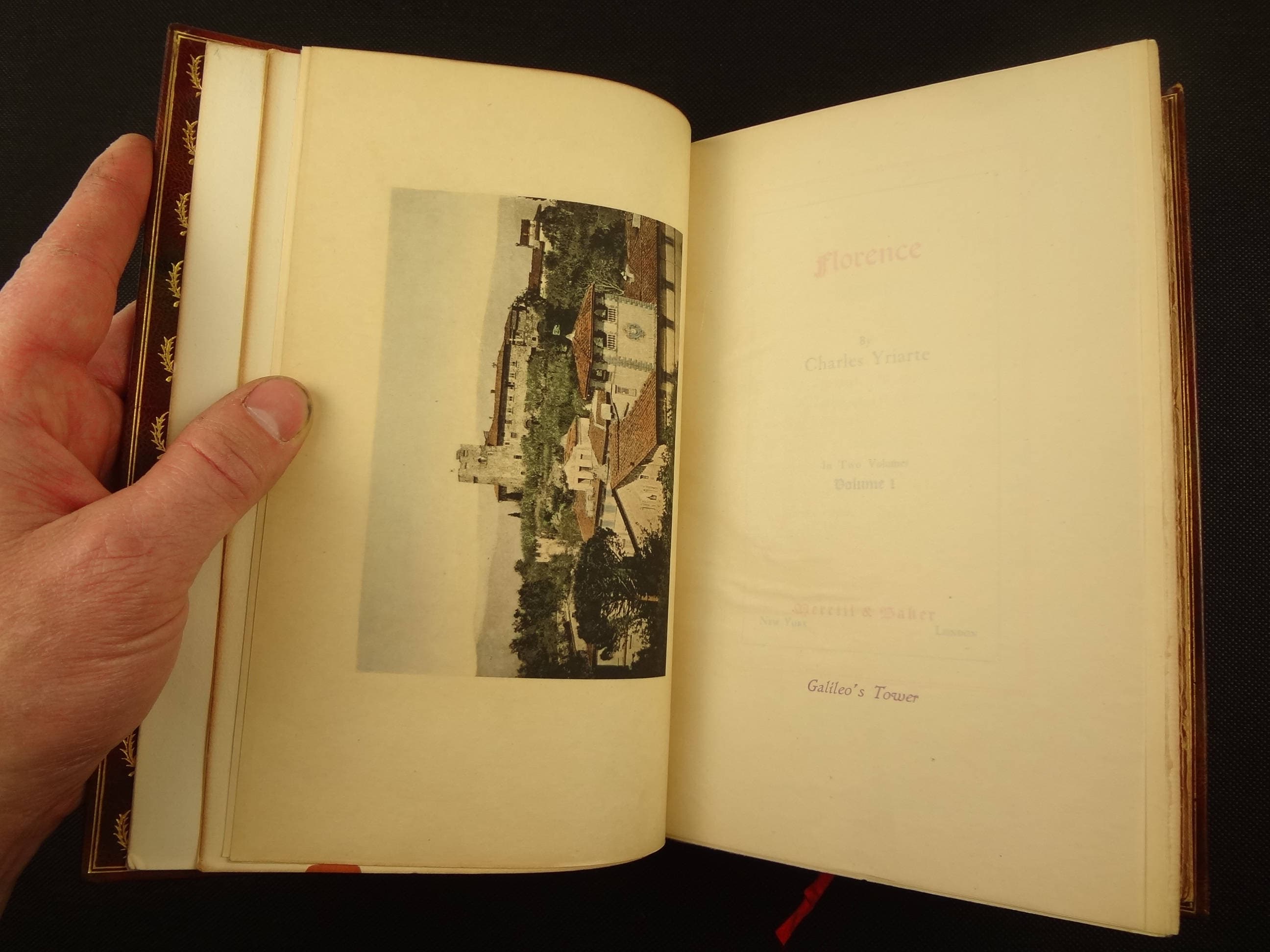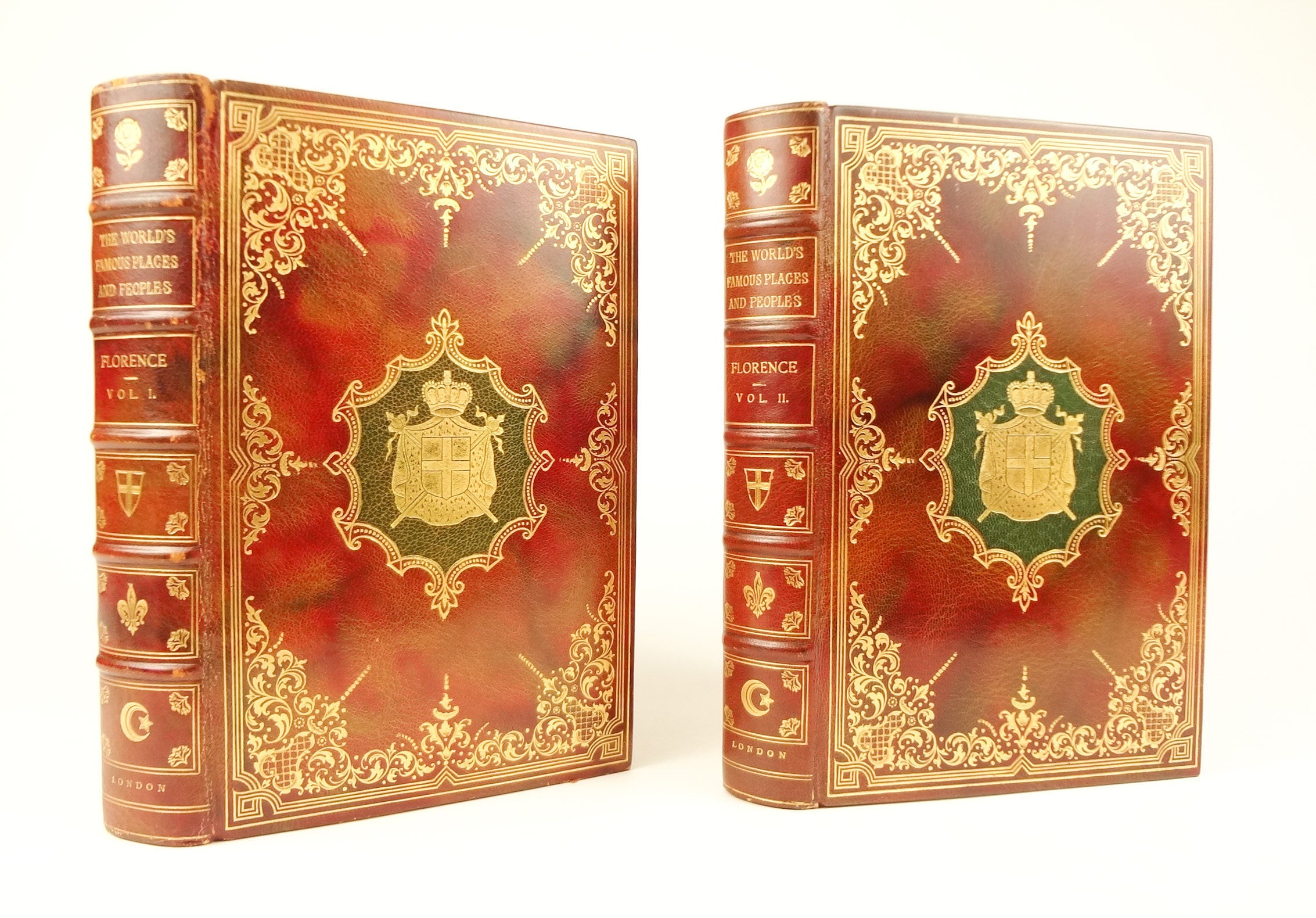 Absolutely stunning bindings decorate these wonderful volumes on Florence; from an edition of only 26 (lettered A to Z), the plates are hand colored (pochoir). The complete work on Florence from the World's Famous Places and Peoples "aquarelles" edition.