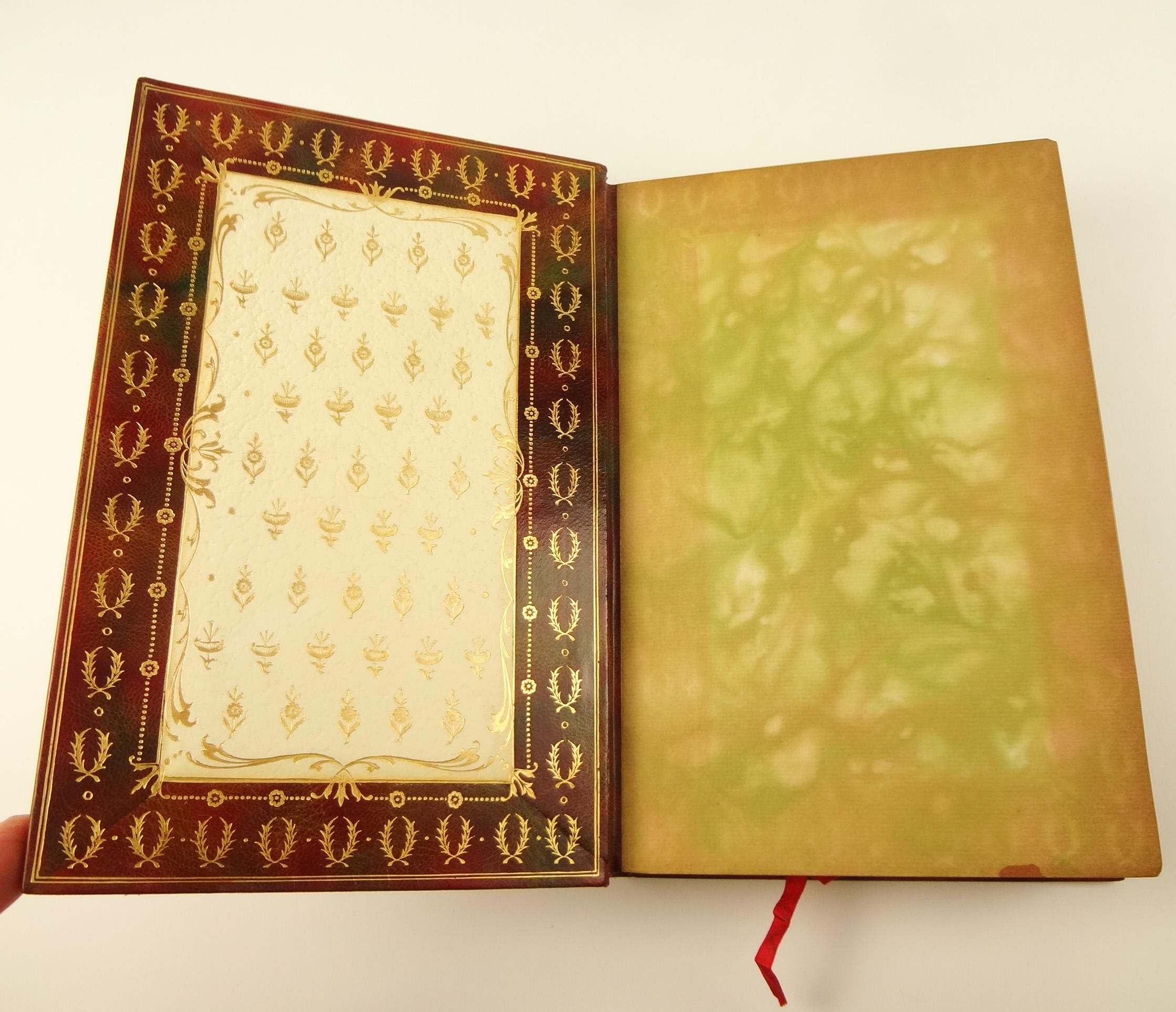 Each measures approx. 22 x 14 x 4 cm. Christie's sale of an entire set (18 May, 2012, Lot 65, $6,250) claimed that the illustrations are hand colored (pochoir). Volume one has 14 illustrations. Volume two has 16 illustrations. From the lettered set "E".