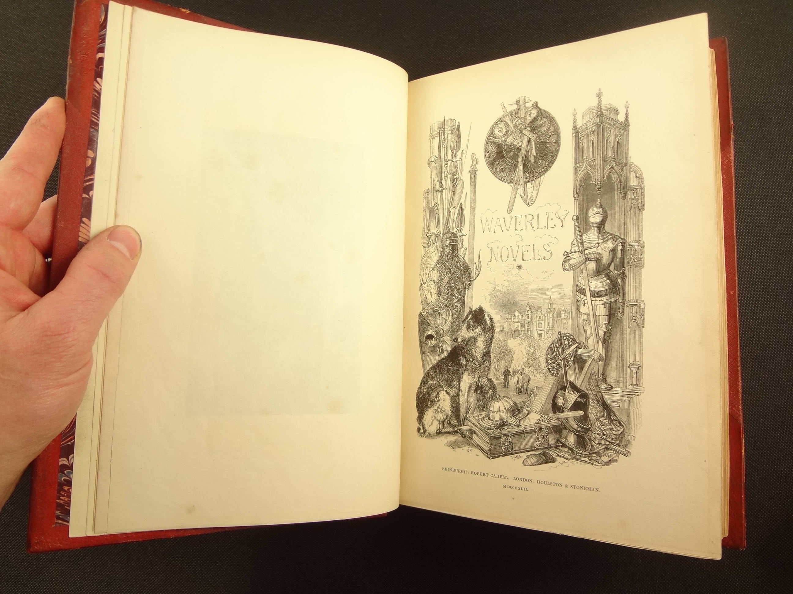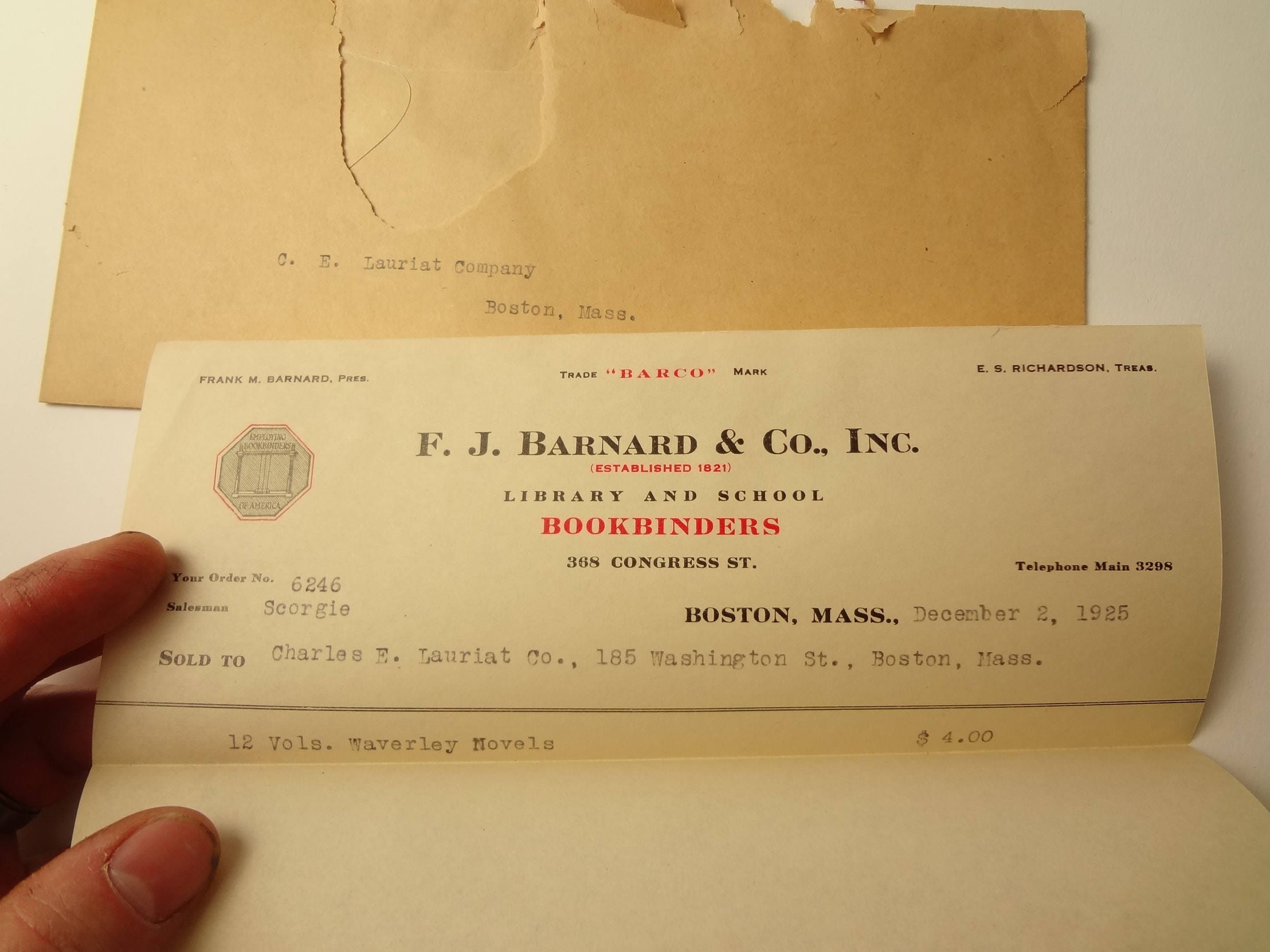 The fantastically illustrated Abbotsford Edition of Sir Walter Scott's exceptional Waverley Novels, complete in twelve finely-bound volumes with approximately two thousand illustrations. An added treat, a 1925 bindery receipt addressed to a well-respected Boston bookseller.