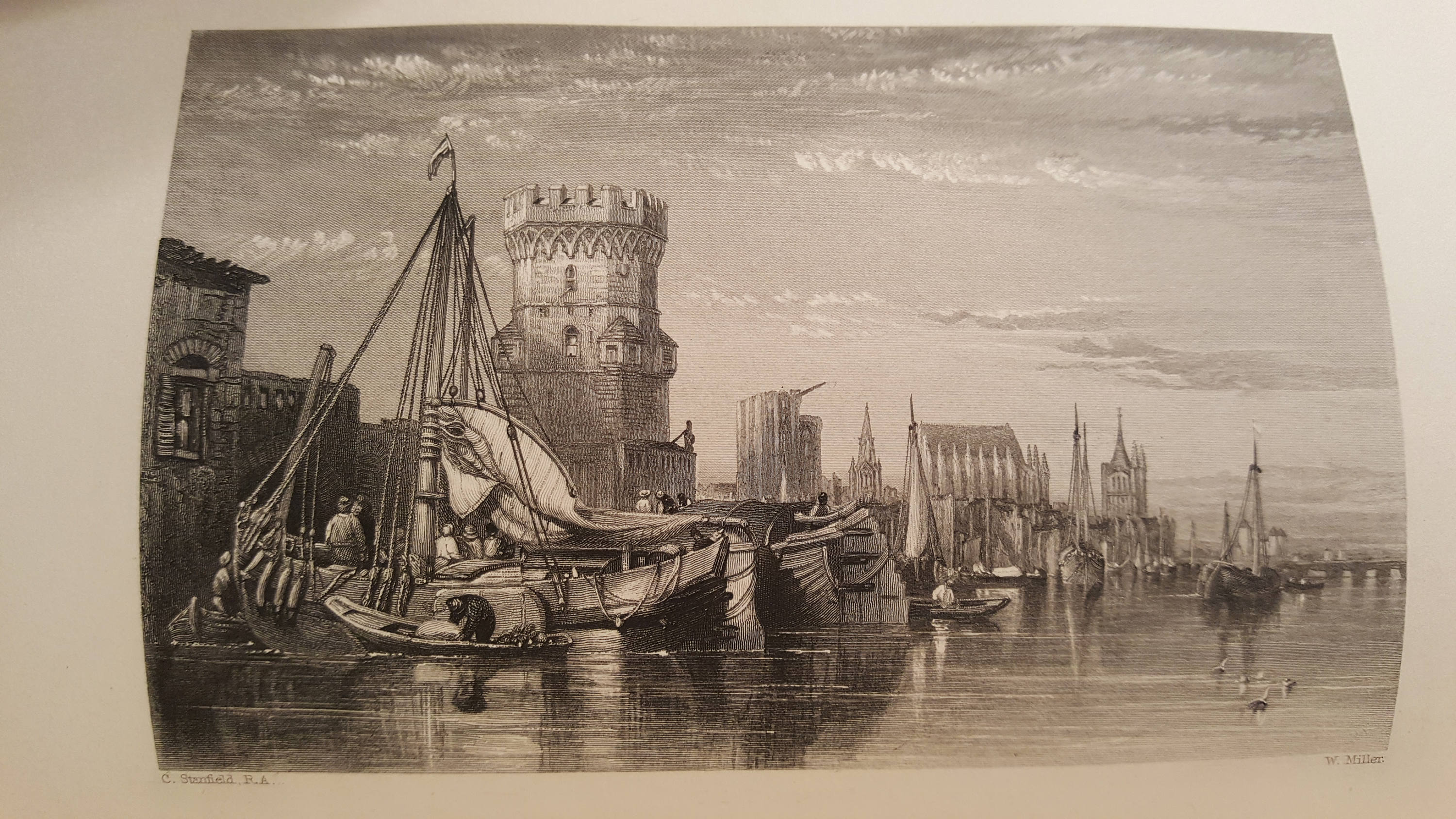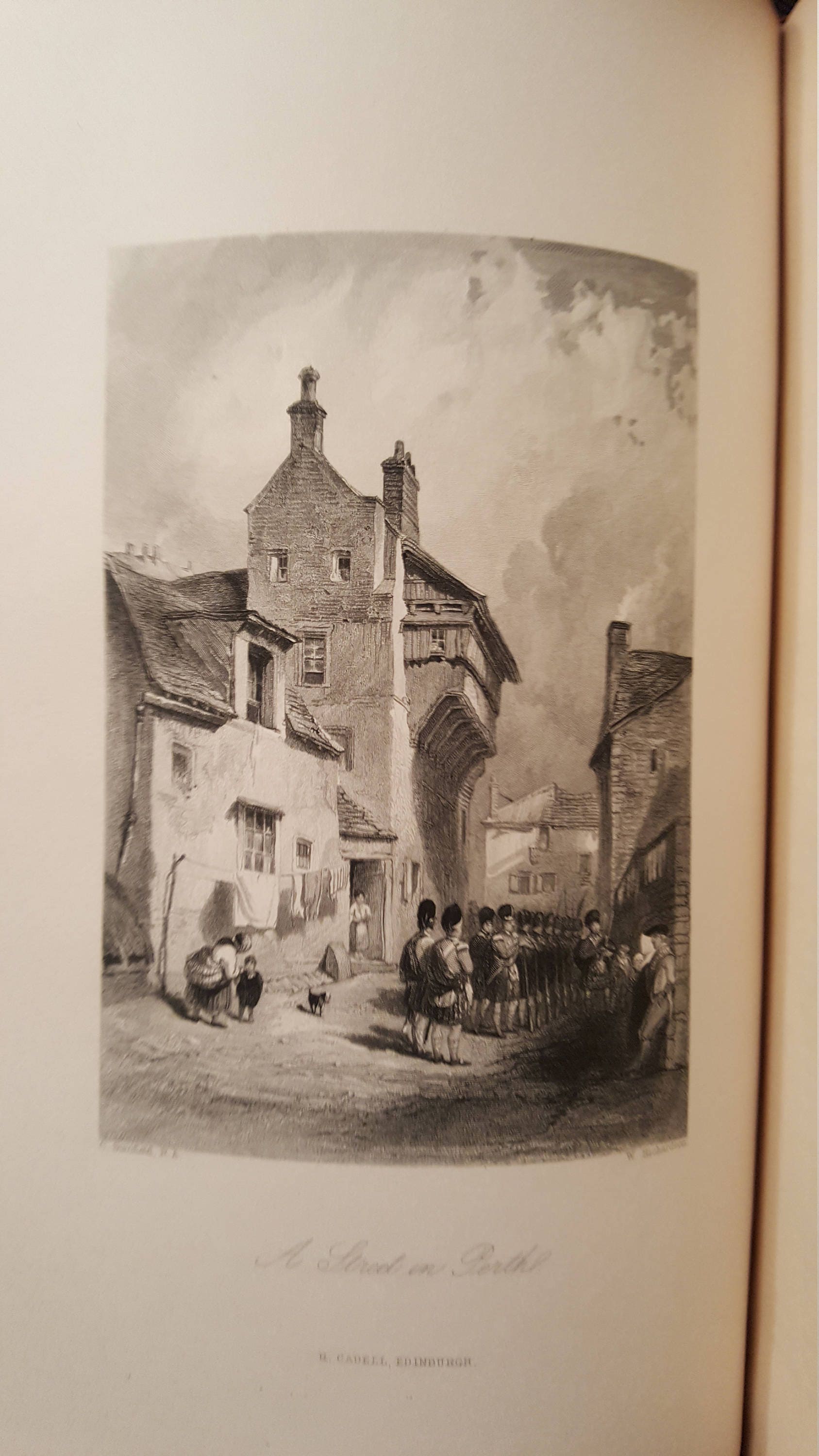Advertisement (in 1st volume) - "" Accordingly, for this Edition, the real localities of his scenes have been explored; the real portraits of his personages have been copied; and his surviving friends and personal admirers, as well as many public bodies and institutions, have liberally places whatever their collections afforded at the disposal of the eminent Artists engaged by the Proprietors… The embellishments of The Abbotsford Edition will be in number about Two Thousand. The prominent Scenery described in the Novels has been adhered to with the utmost care by Clarkson Stanfield, R.A., who spent last Summer in its investigation, and has already finished whatever was needed for the earlier Novels."