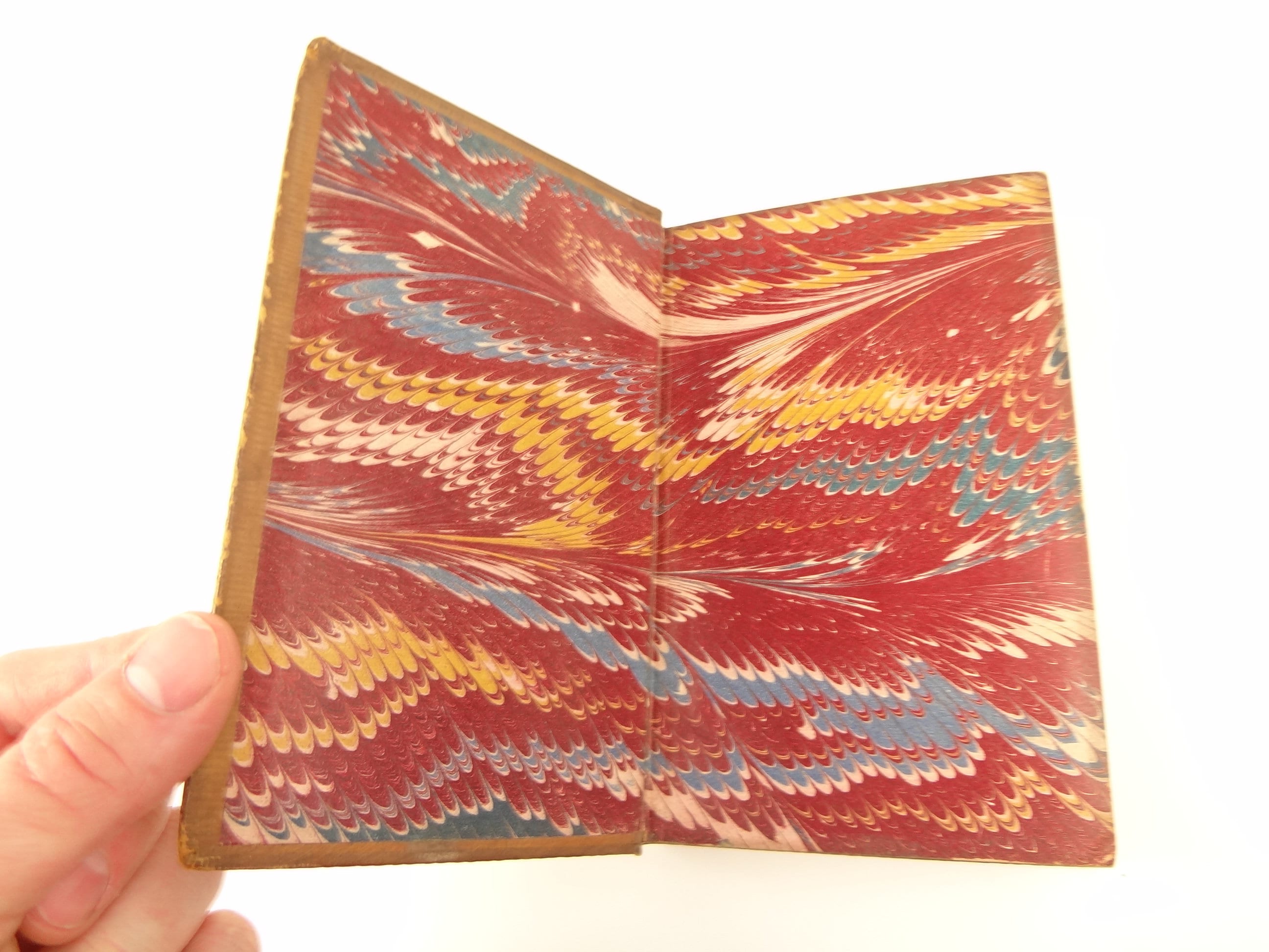 See pictures. Some light shelf wear and rubbing at corners and top and bottom of spine. Some fade to fore-edge marbling. Spots on endpapers through title page. After that, the occurrence of a spot becomes infrequent and singular. Endpapers at rear also have spots, which ghosted on the last page of text. Blank front endpaper with prize inscription has been removed. Bookseller notes on back of flyleaf and frontis. A handsome book, with a bright armorial.