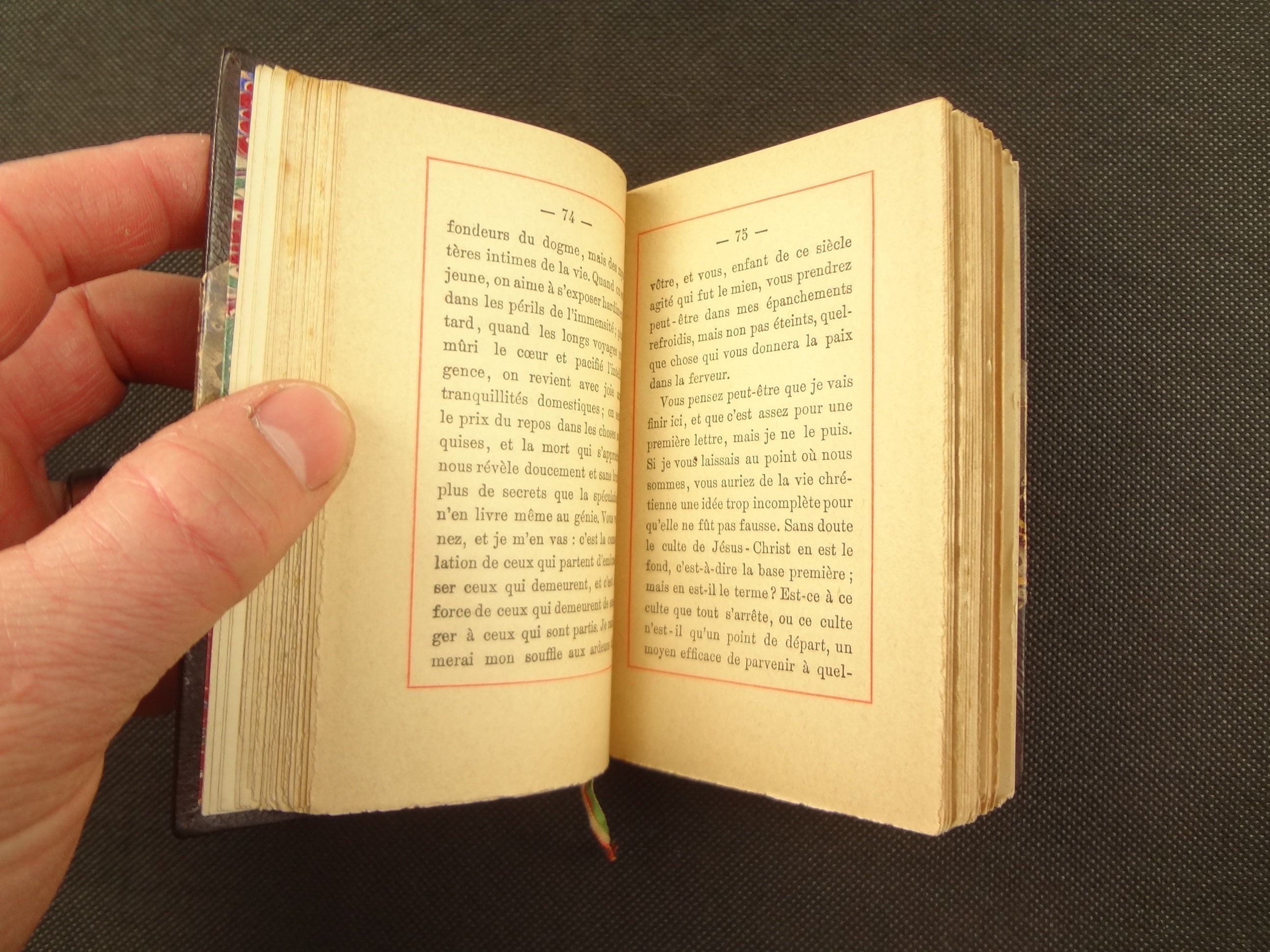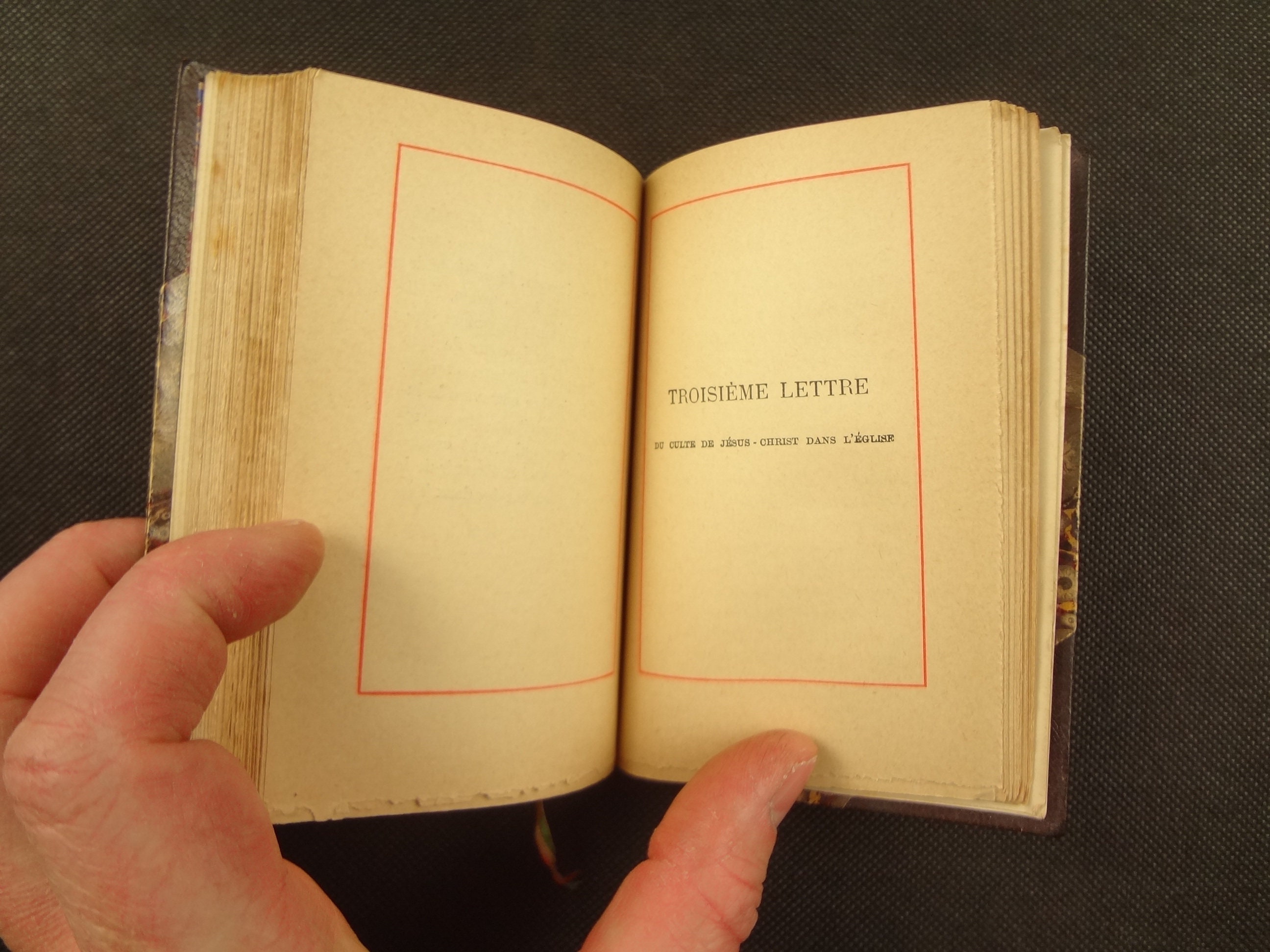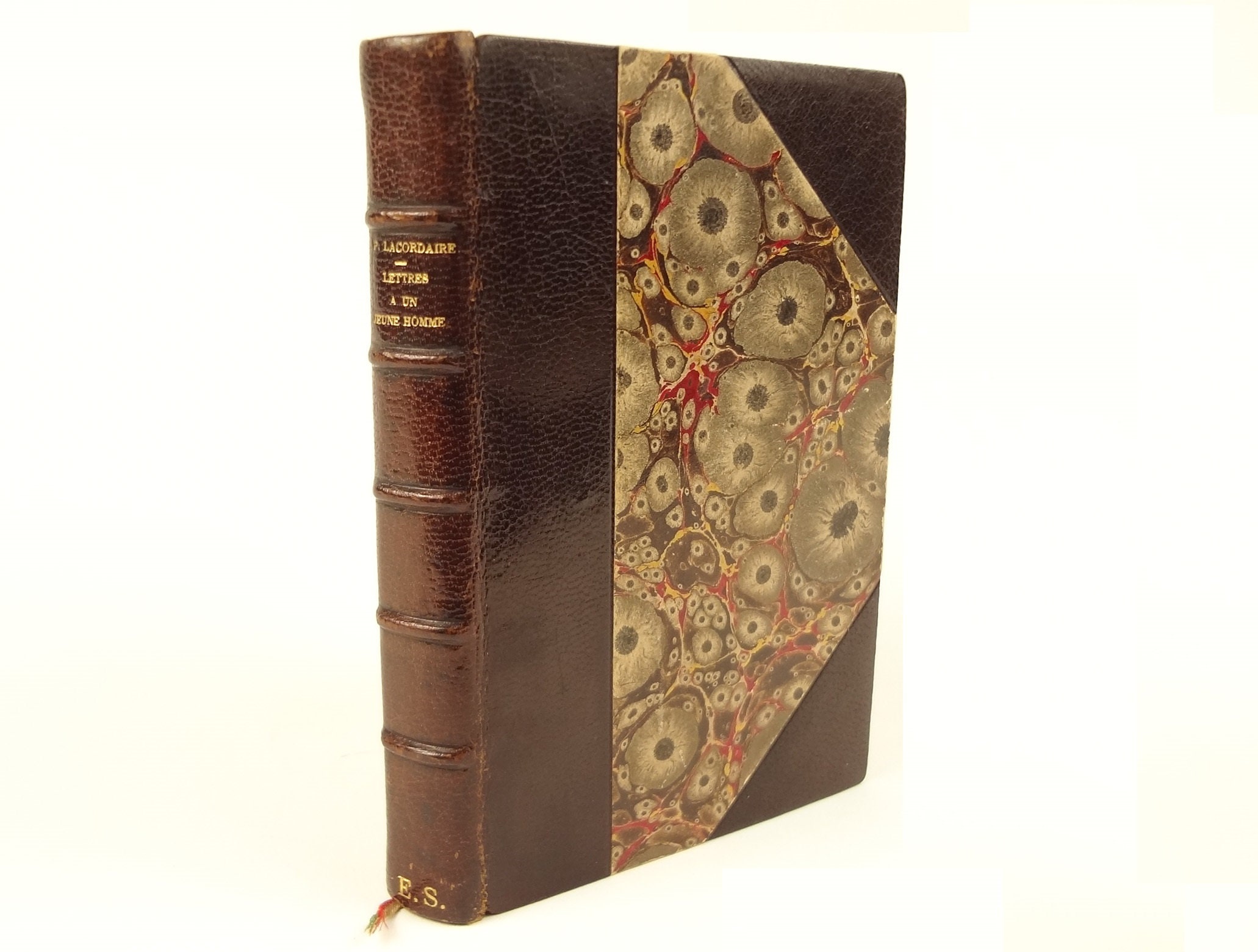 A very handsome, if watchful, little fine binding graces this petite printing of a 19th century French work from a well-regarded orator and preacher Jean-Patiste Henri-Dominique Lacordaire.