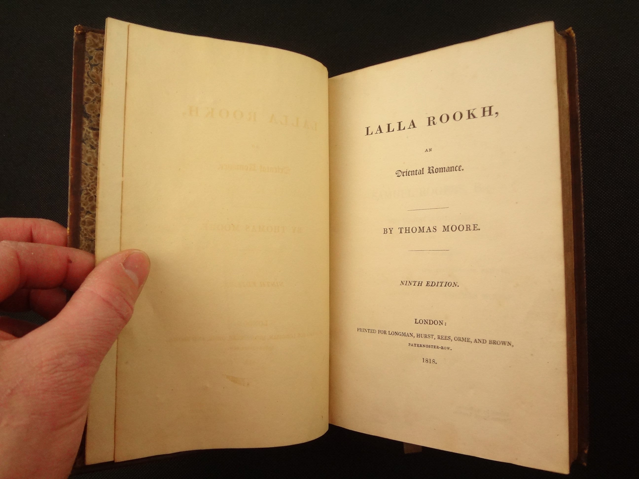 A handsomely bound 1818 printing of Thomas Moore's classic work Lalla Rookh! This spine is beautiful on the book shelf!