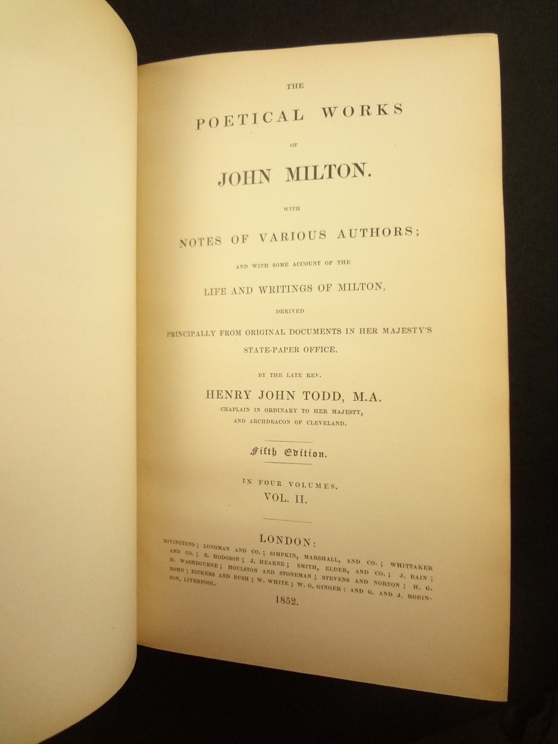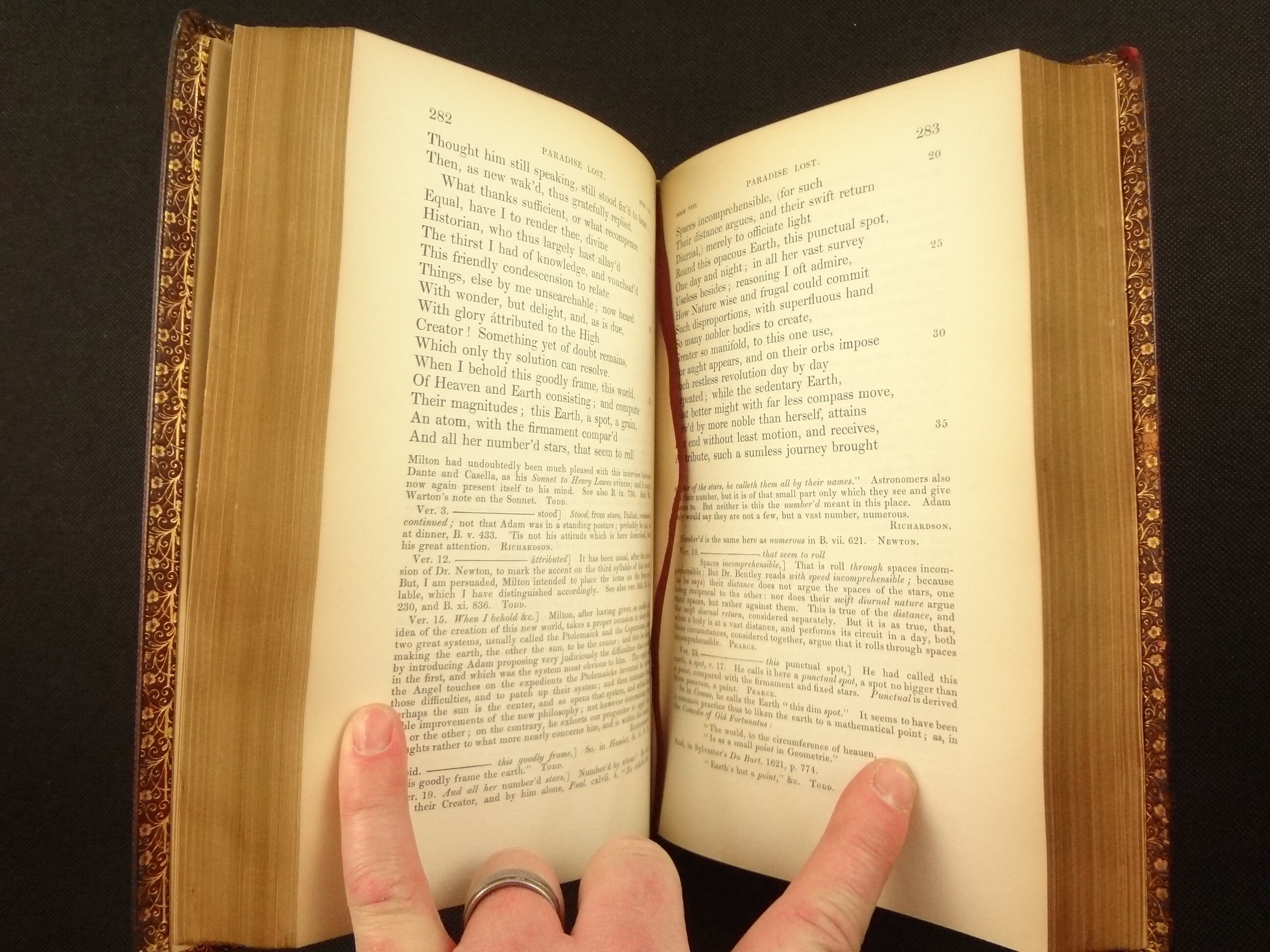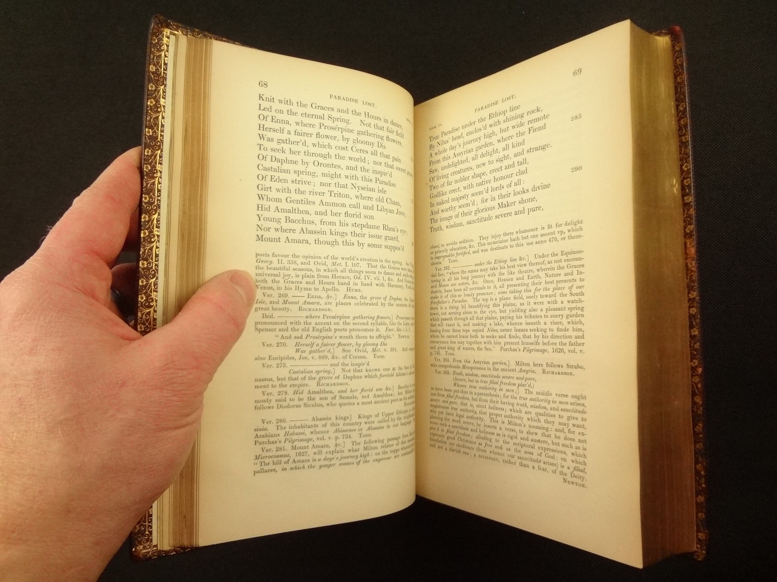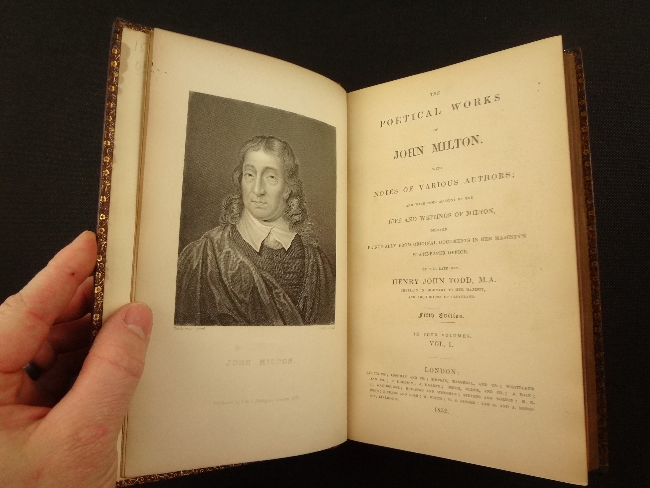A 19th century collection of the Poetical Works of John Milton in handsome bindings. Includes Paradise Lost, and Paradise Regained. This work is annotated by other authors, and includes a Life of Milton.