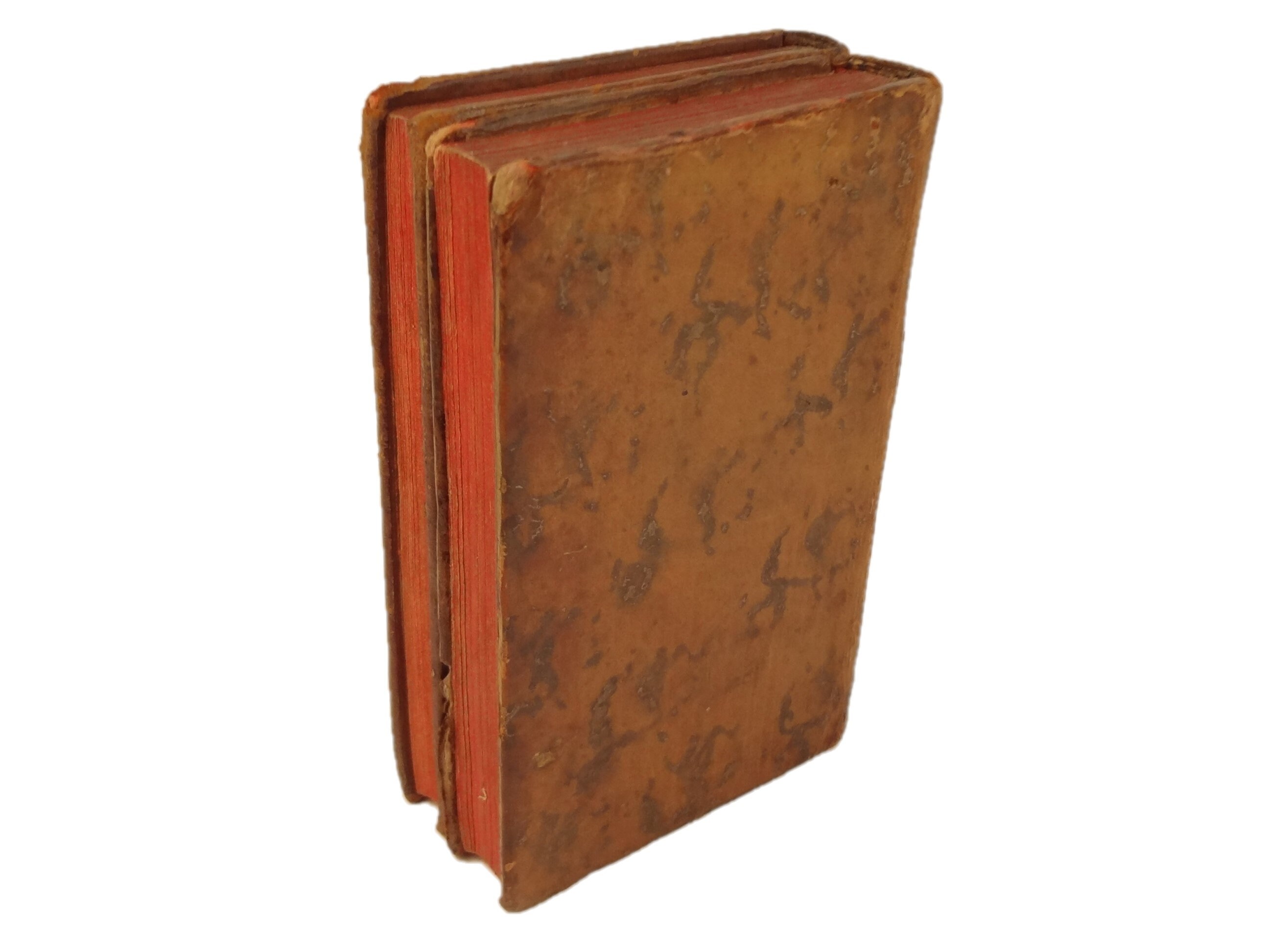 Each measures approx. 13.5 x 8.5 cm. Calf "cat's-paw" bindings. Spines with six compartments ruled in gilt; four with a central floret, and two with the title and "Tom" in gilt on red and black morocco. All edges red. Marbled endpapers. Pages - 288, 177