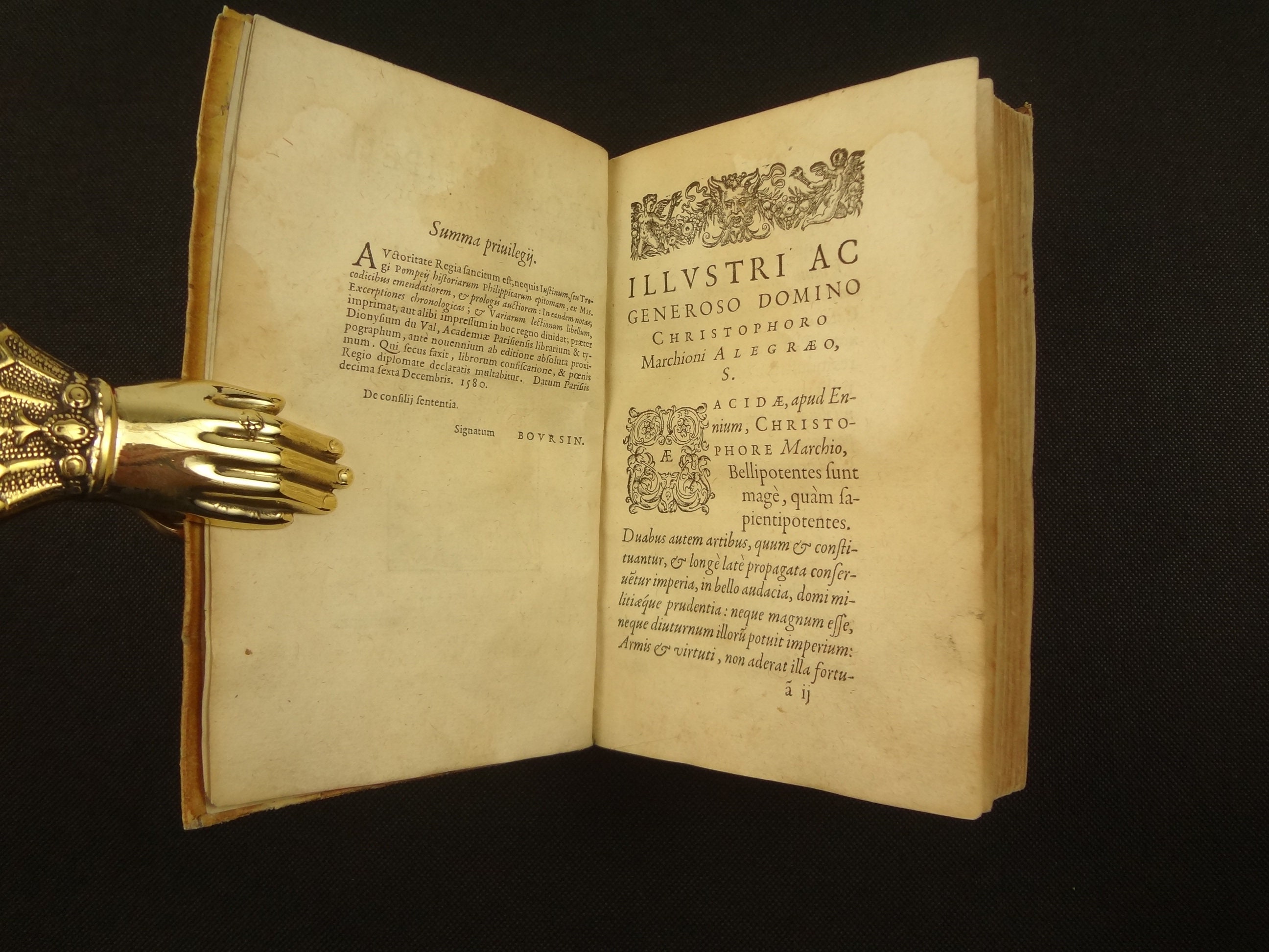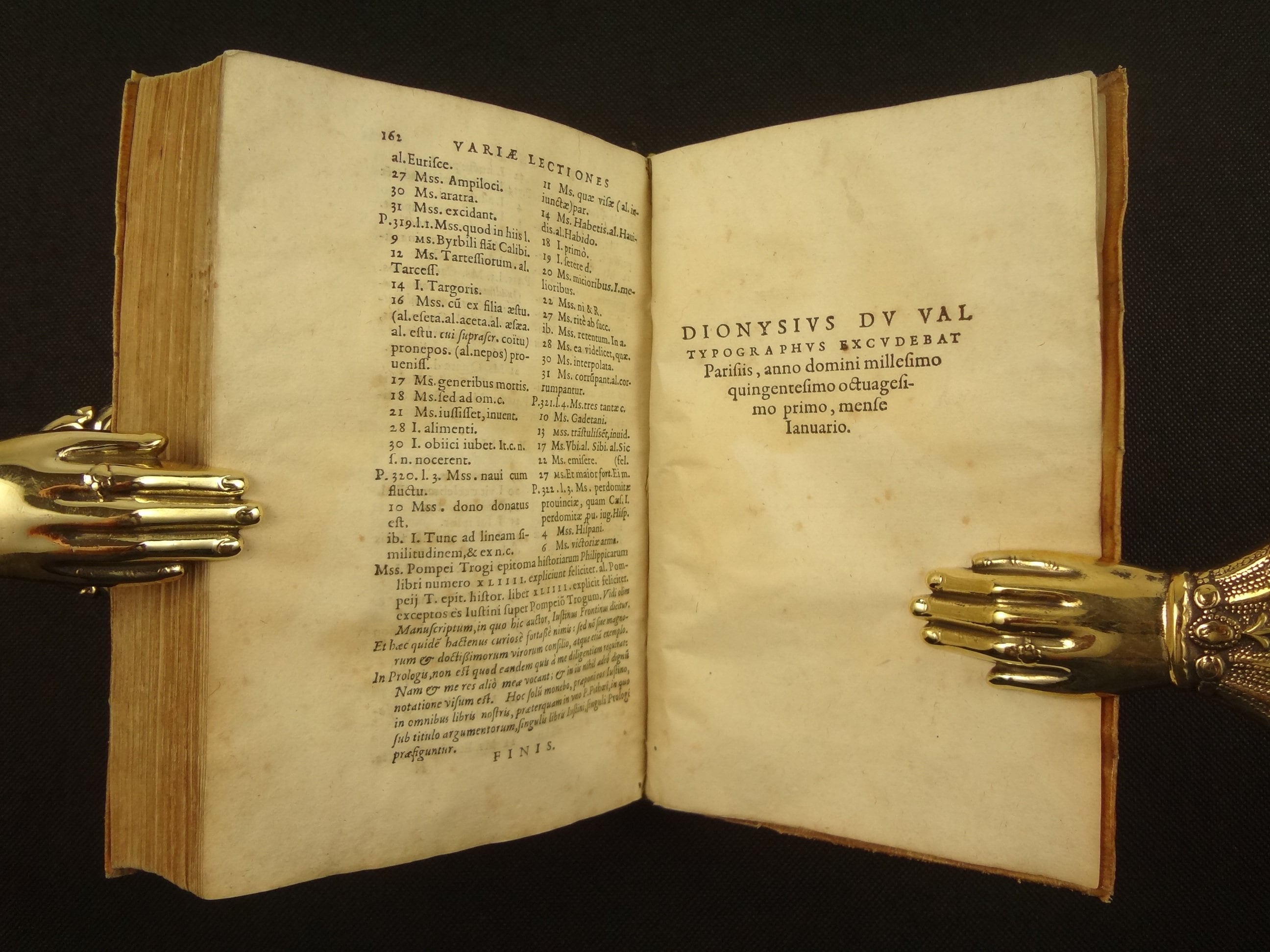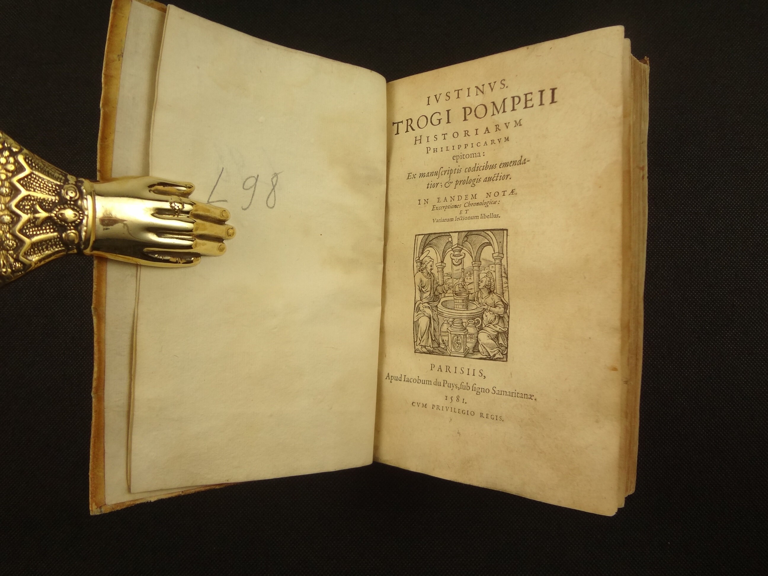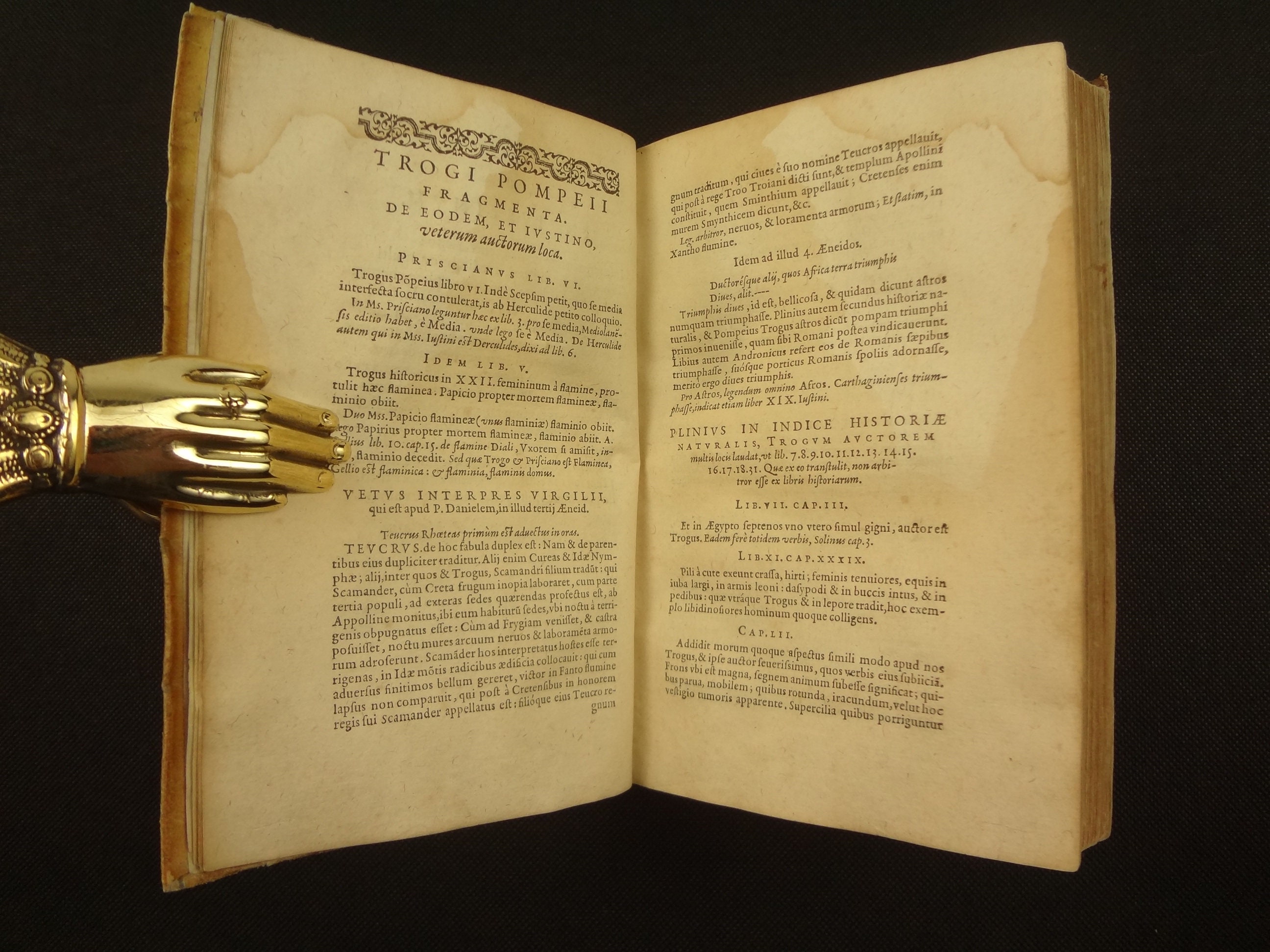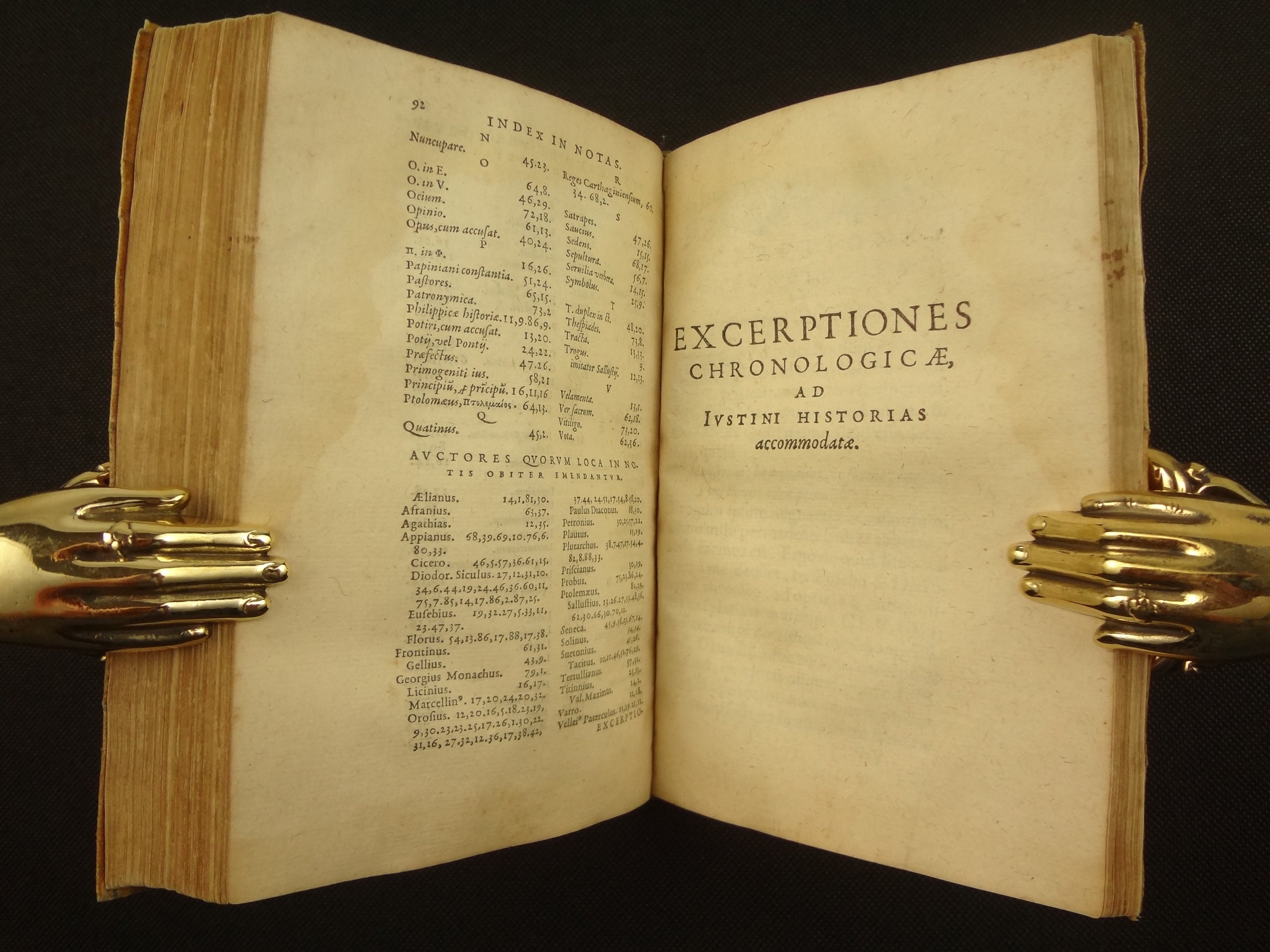 1581 first edition of Jacques Bongars' well-respected, researched and annotated abridgement of the second century's Epitome, by Justin, which Justin gathered from the chronicles of the kings of Macedonia, also known as the Philippic Histories, written in the first century by Trogus (a work lost to history, apart from excerpts used by other authors and Justin's work).