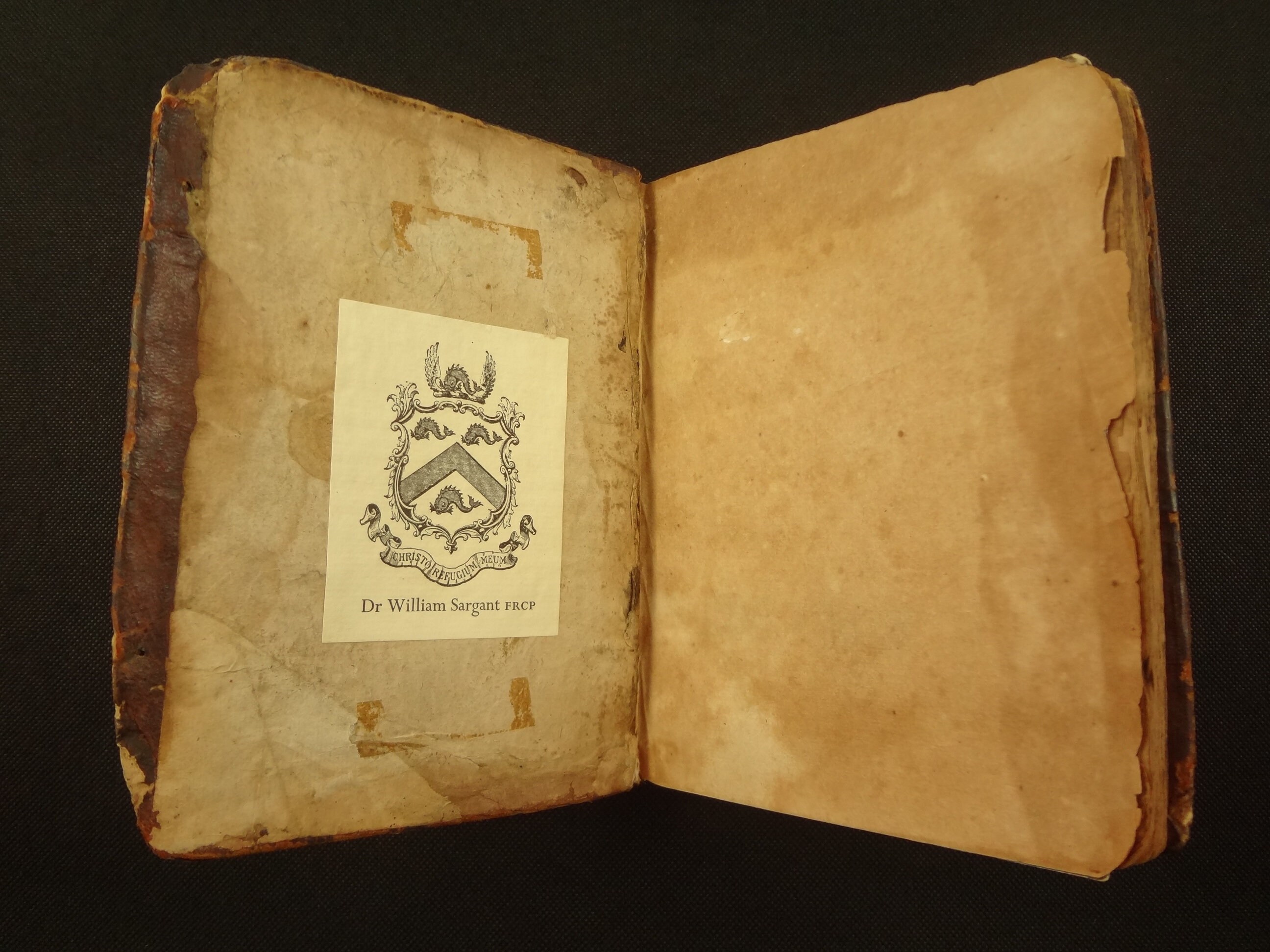 Ex-libris of Dr. William Sargent, a well-known but controversial psychiatrist who was an out-spoken advocate of methods such as psychosurgery (surgery to the brain for psychiatry reasons), electroconvulsive therapy, and insulin shock therapy.